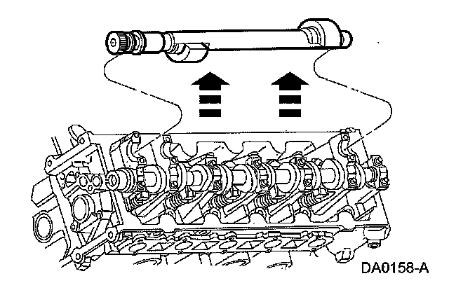 1 Rotate the LH camshaft with the Camshaft Positioning Tool until the timing mark is approximately at 12 o'clock.