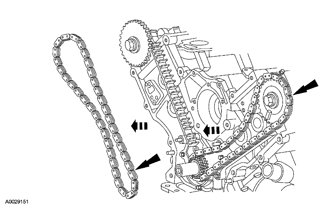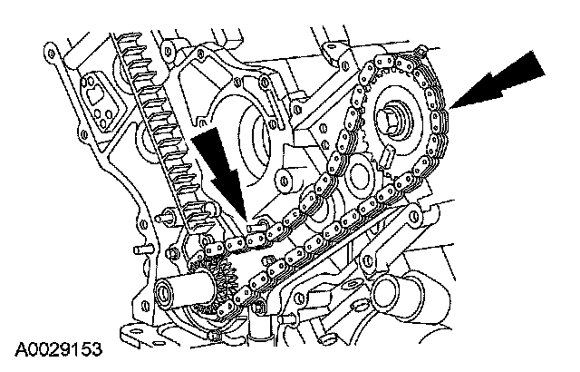 9. Install the lower end of the LH timing chain, aligning the timing marks.