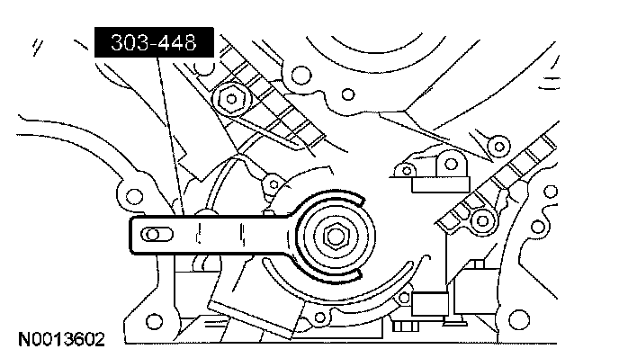 6. NOTE: Slightly loosen the Camshaft Holding Tool to allow slight camshaft movement.