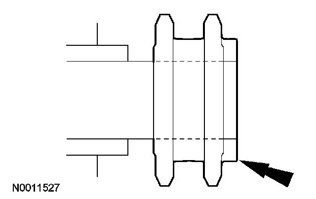 1. CAUTION: Prior to installation, inspect the tensioner-sealing bead for seal integrity. If cracks, tears, separation from the tensioner body or permanent compression of the seal bead is observed, install a new tensioner.