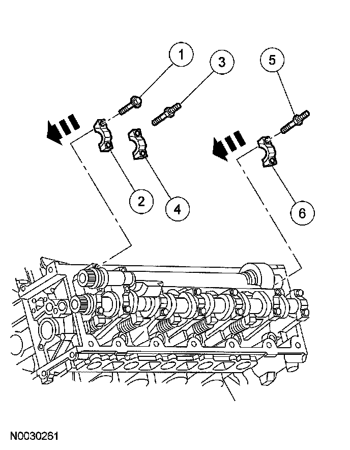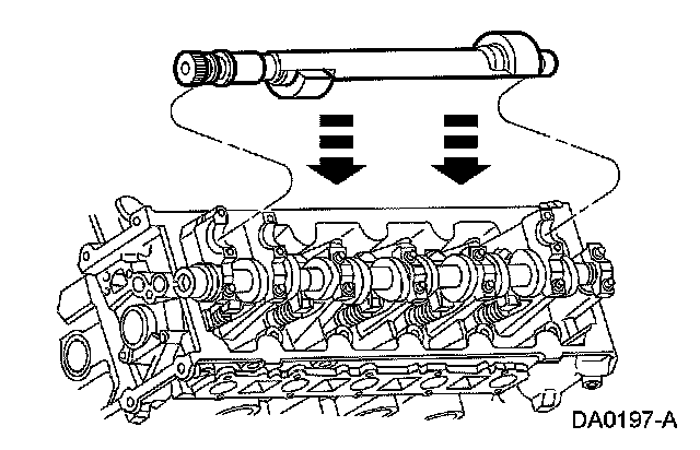 ^ Tighten the Camshaft Holding Tool to maintain camshaft prepositioning.