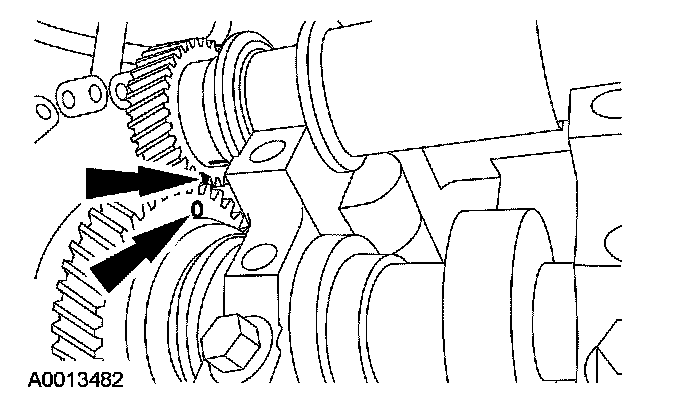 19. Using the index mark on the balance shaft, mark the corresponding gear tooth with chalk.