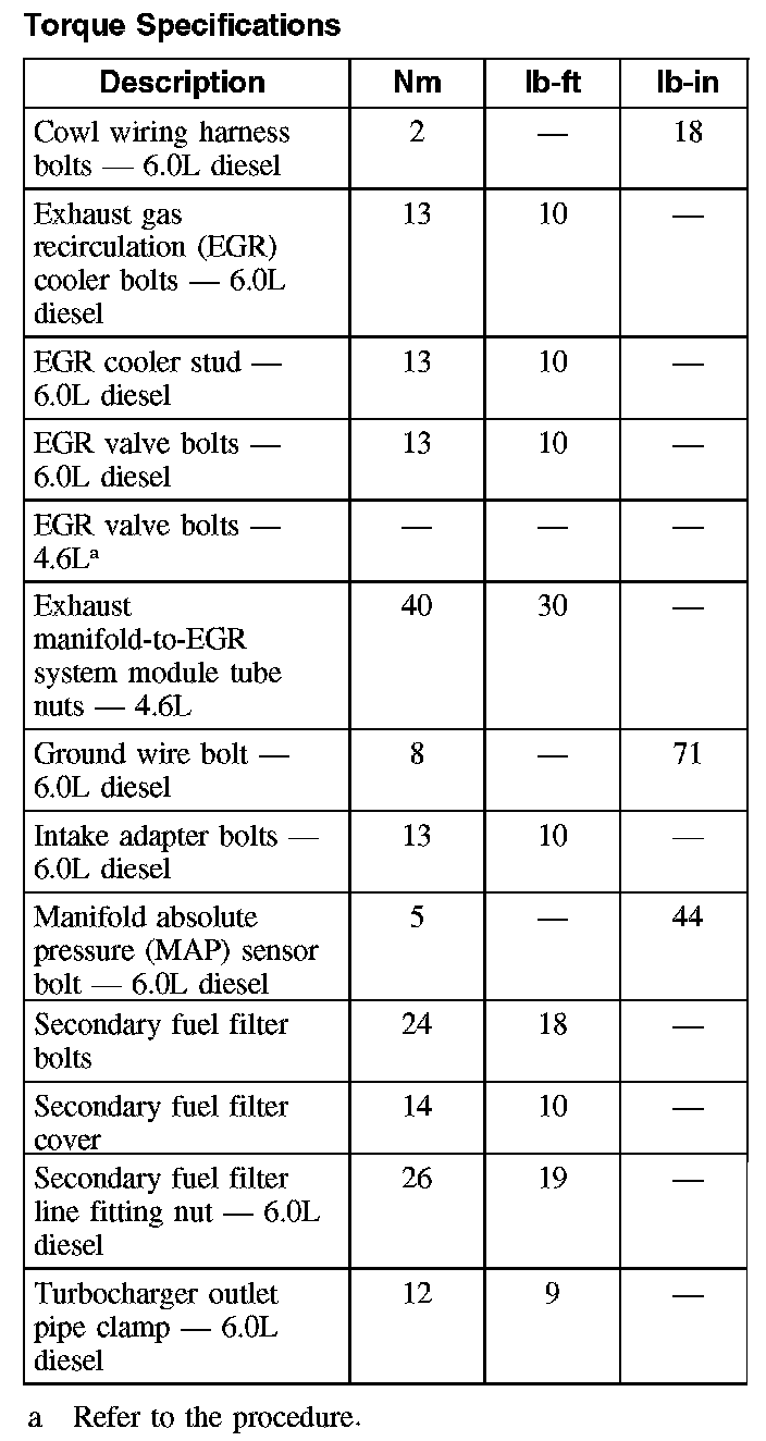 Torque Specifications: