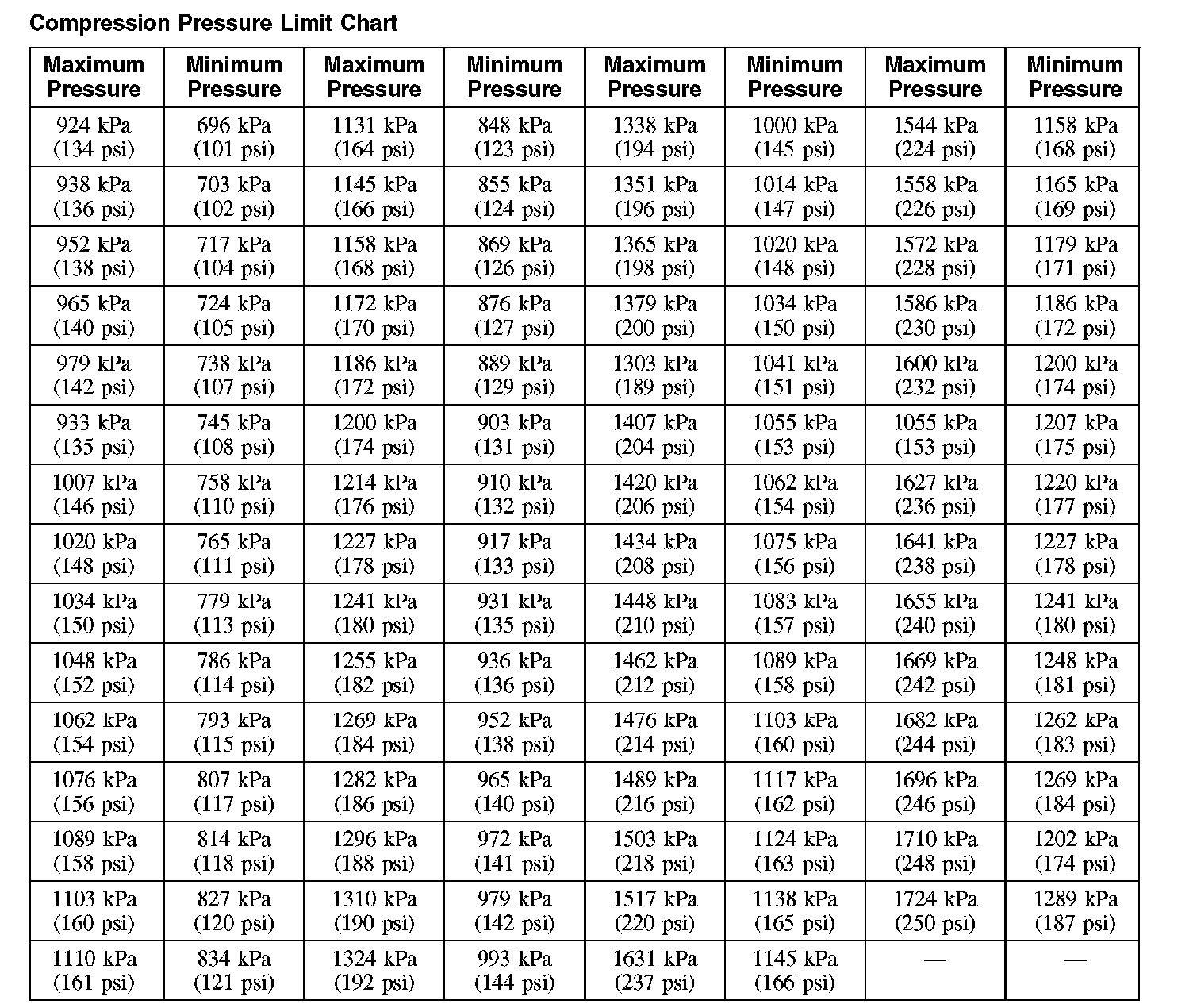 Compression Pressure Limit Chart