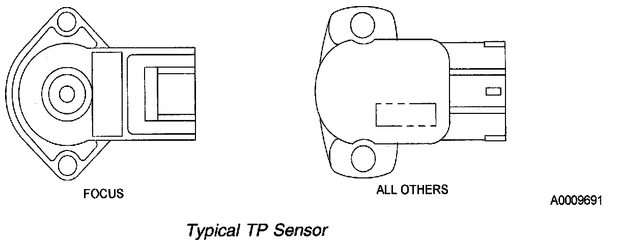 The TP sensor is a rotary potentiometer sensor that provides a signal to the PCM that is linearly proportional to the throttle plate/shaft position. The sensor housing has a 3-blade electrical connector that may be gold plated. The gold plating increases the corrosion resistance on the terminals and increases the connector durability. The TP sensor is mounted on the throttle body. As the TP sensor is rotated by the throttle shaft, 4 operating conditions are determined by the PCM from the TP. The operating conditions are: