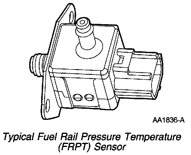 The FRPT sensor measures the pressure and temperature of the fuel in the fuel rail and sends these signals to the PCM. The sensor uses the intake manifold vacuum as a reference to determine the pressure difference between the fuel rail and the intake manifold. The relationship between fuel pressure and fuel temperature is used to determine the possible presence of fuel vapor in the fuel rail.