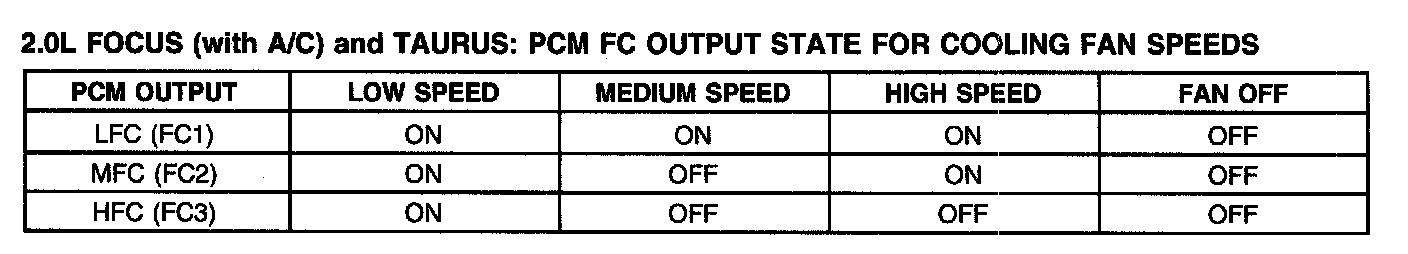 2.0L Focus (with A/C) And Taurus: PCM FC Output State For Cooling Fan Speeds: