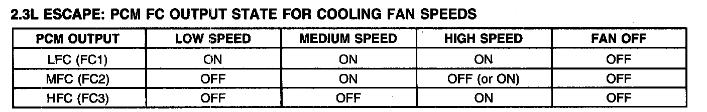 2.3L Escape: PCM FC Output State For Cooling Fan Speeds: