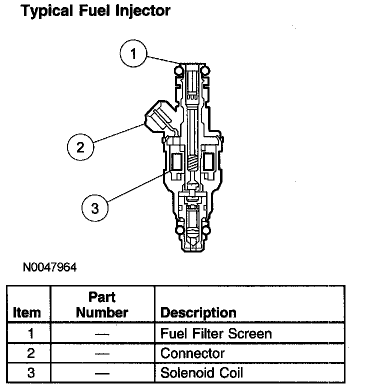 The fuel injector is normally closed, and is operated by a 12-volt source from either the electronic engine control (EEC) power relay or fuel pump relay. The ground signal is controlled by the PCM.