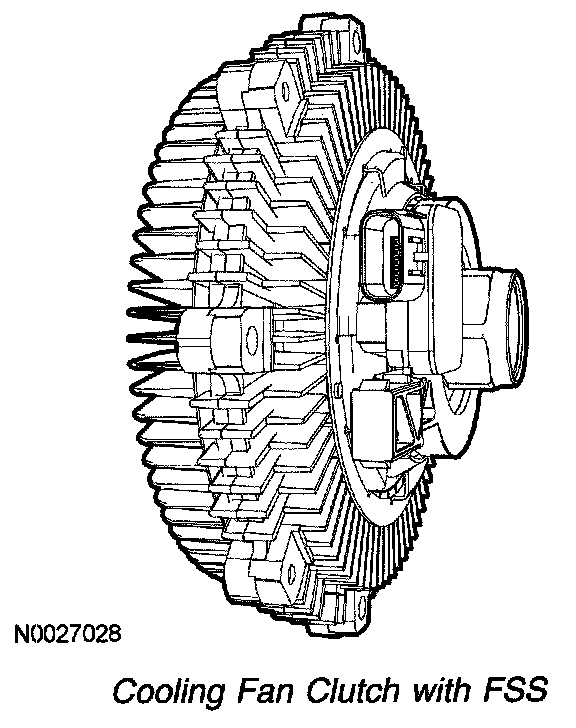 The FSS is a Hall-effect sensor that measures the cooling fan clutch speed by generating a waveform with a frequency proportional to the fan speed. If the cooling fan clutch is moving at a relatively low speed, the sensor produces a signal with a low frequency. As the cooling fan clutch speed increases, the sensor generates a signal with a higher frequency. The powertrain control module (PCM) uses the frequency signal generated by the FSS as a feedback for closed loop control of the cooling fan clutch.