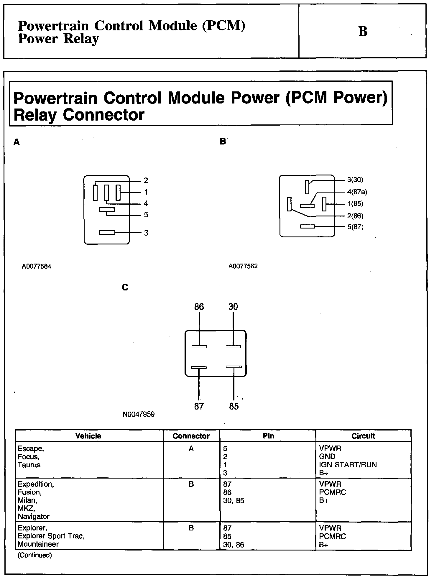 Powertrain Control Module Power (PCM Power) Relay Connector: