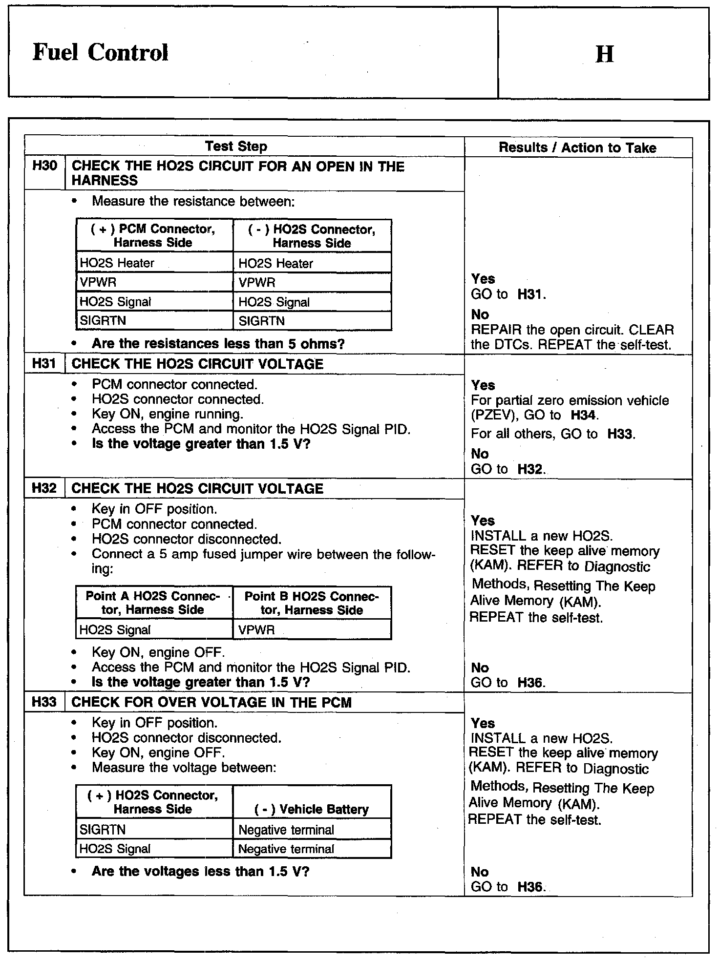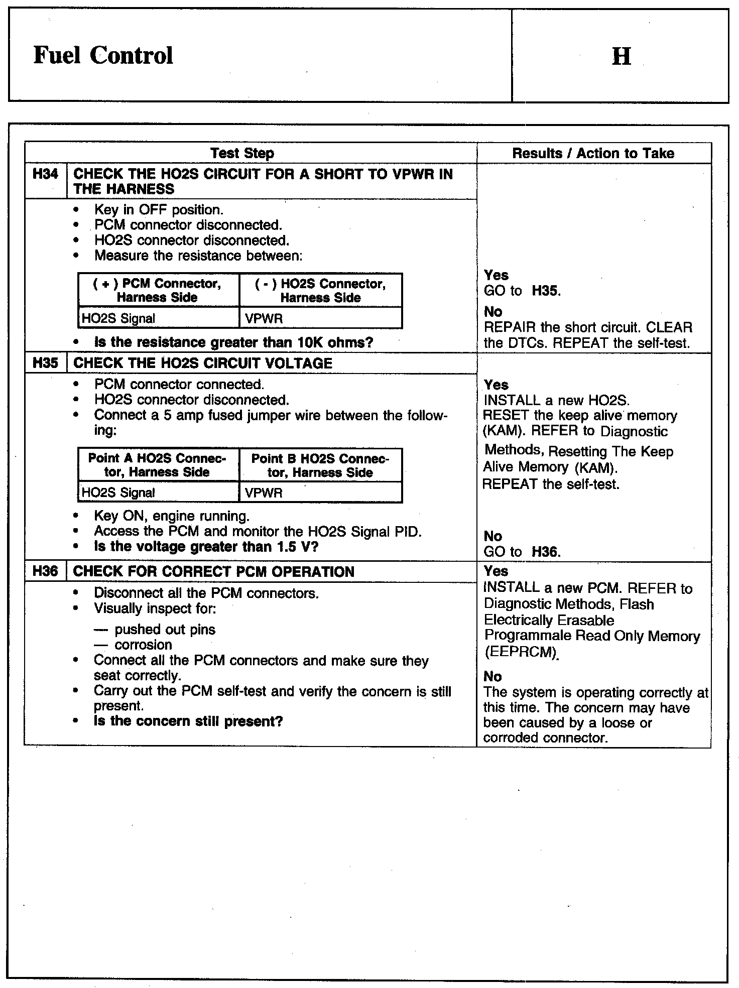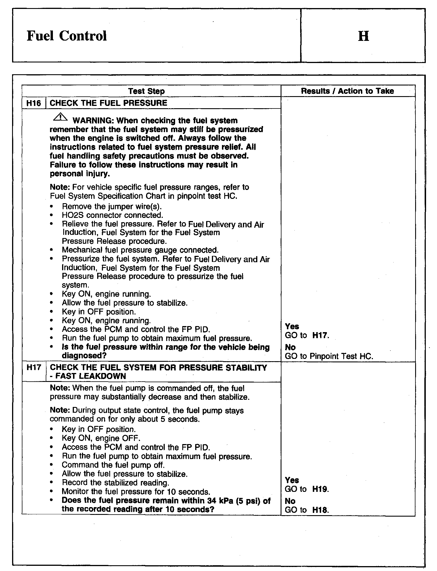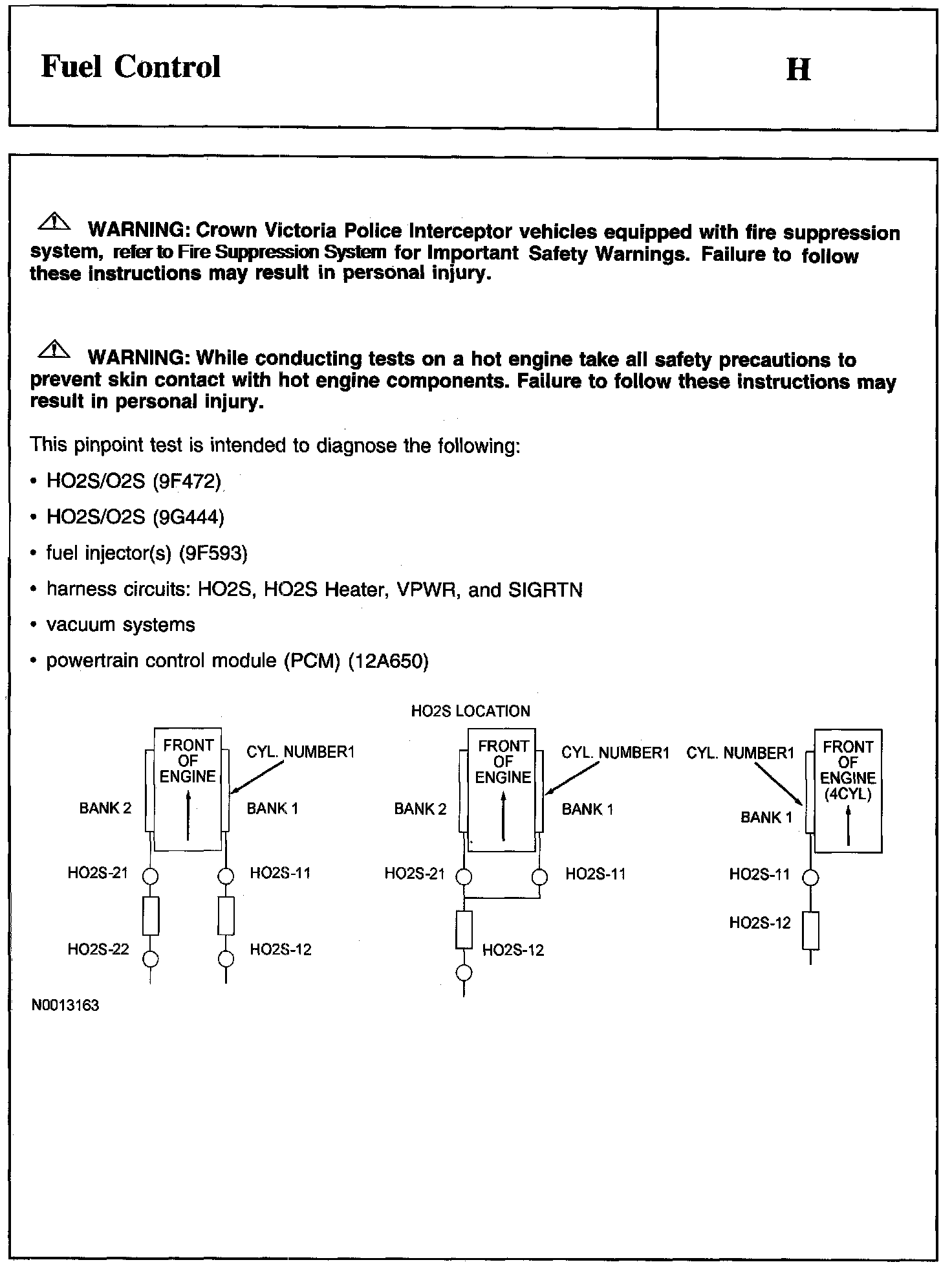 PINPOINT TEST H: FUEL CONTROLWarning And Schematic:
