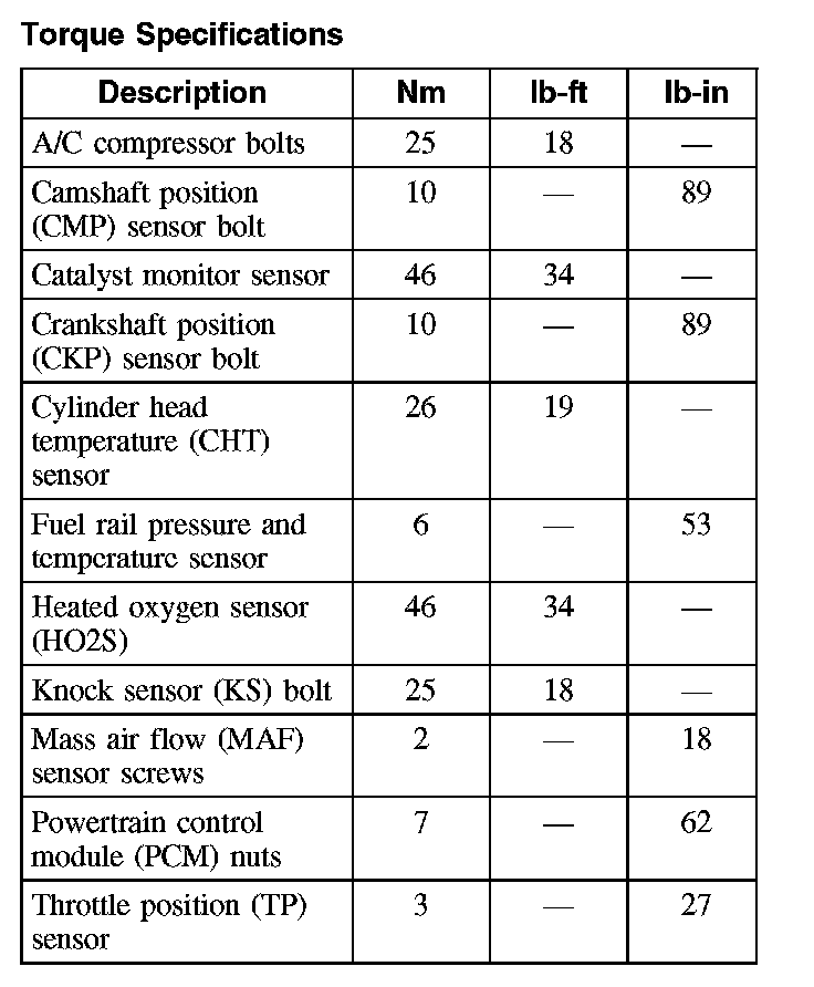 Torque Specifications: