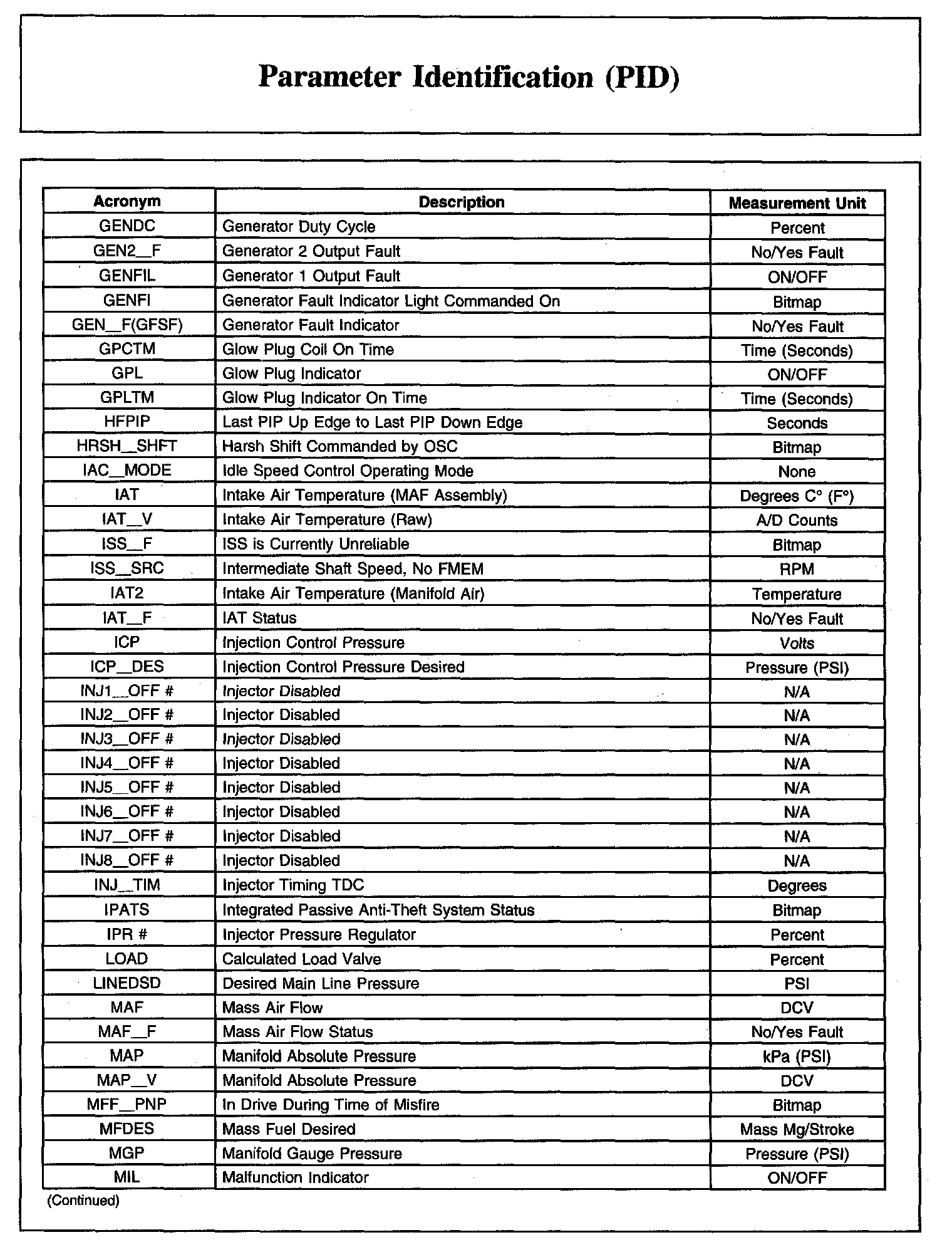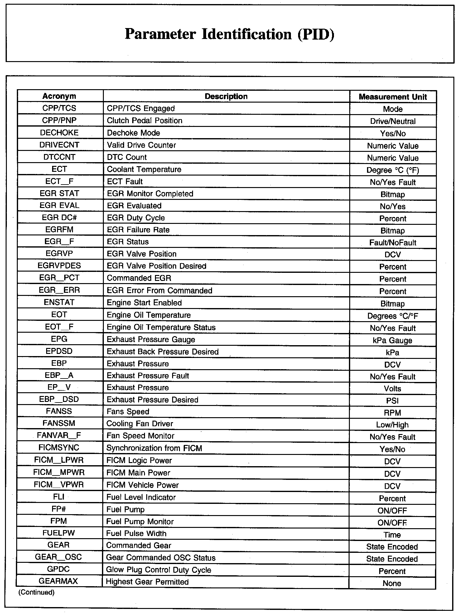 Home >> Ford >> 2007 >> E 450 V8-6.0L DSL Turbo >> Repair and Diagnosis >> Powertrain Management >> Computers and Control Systems >> Testing and Inspection >> Scan Tool Testing and Procedures >> Parameter Identification (PID)