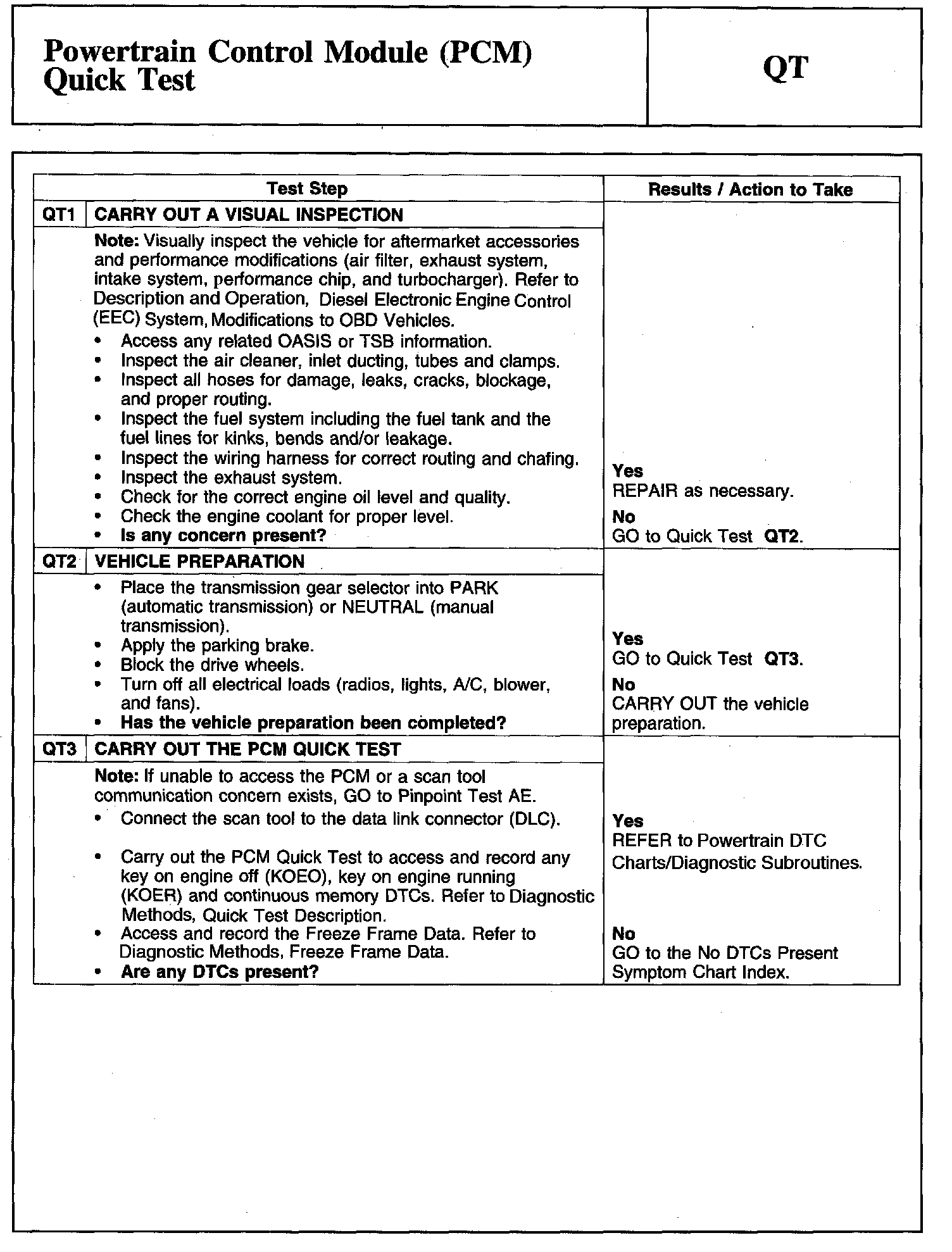 QT: Powertrain Control Module (PCM) Quick Test