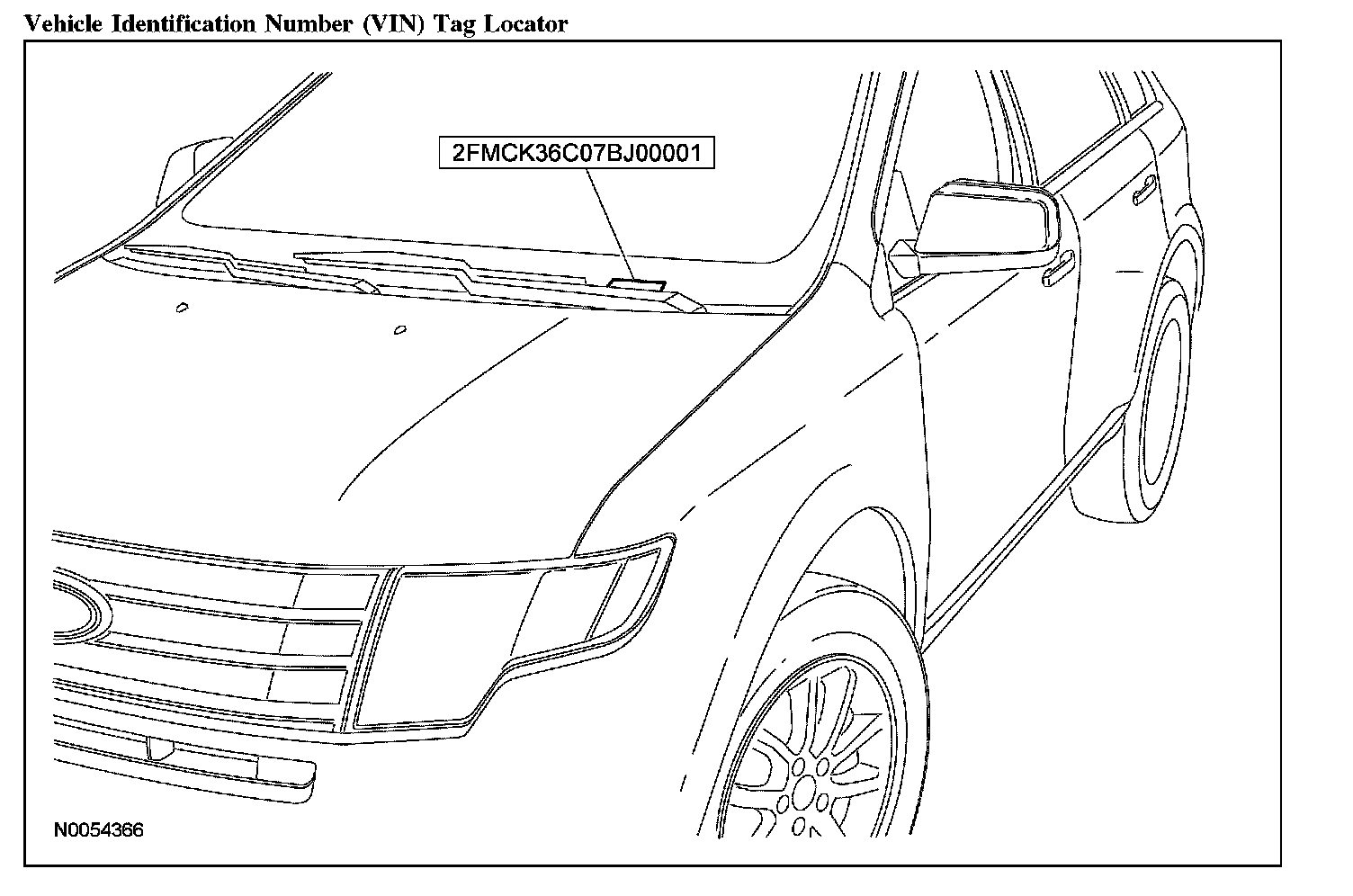 The vehicle identification number (VIN) is a 17-digit combination of letters and numbers. The VIN is stamped on a metal tab riveted on the instrument panel, top upper left of the dash. The VIN is also found on the vehicle certification (VC) label.
