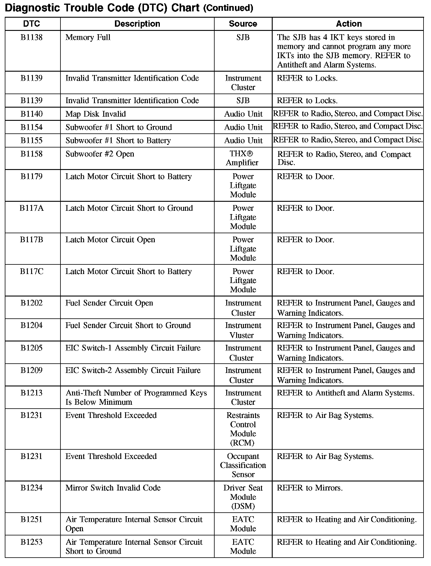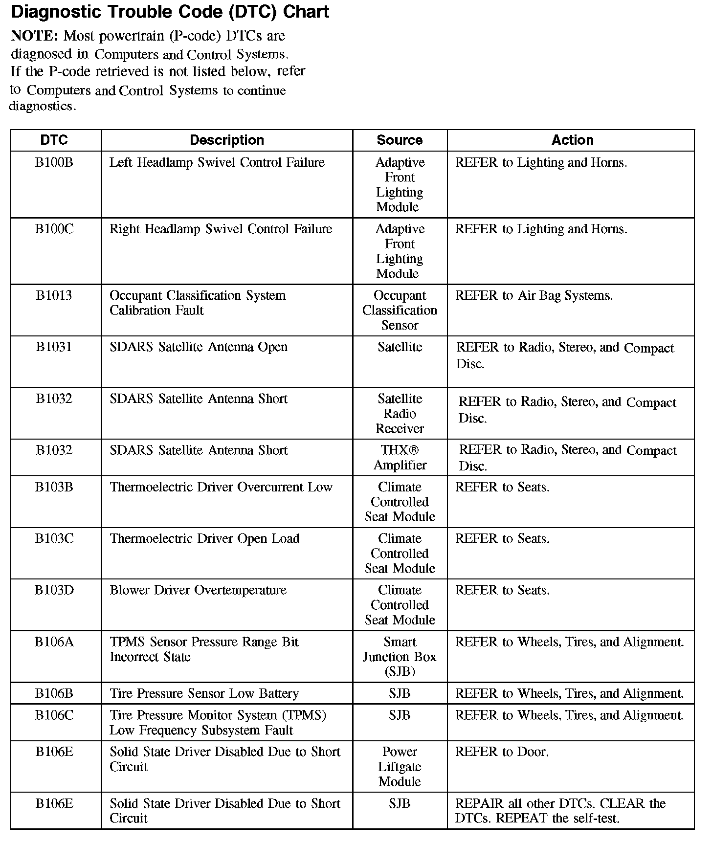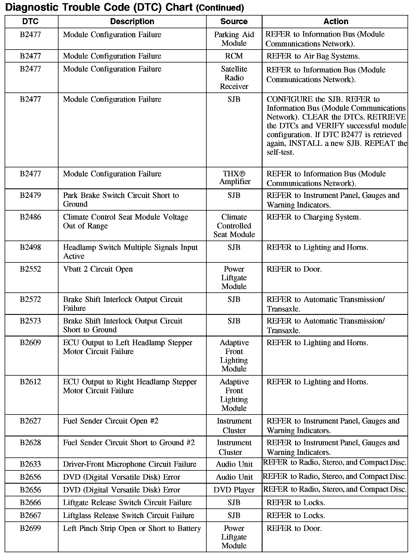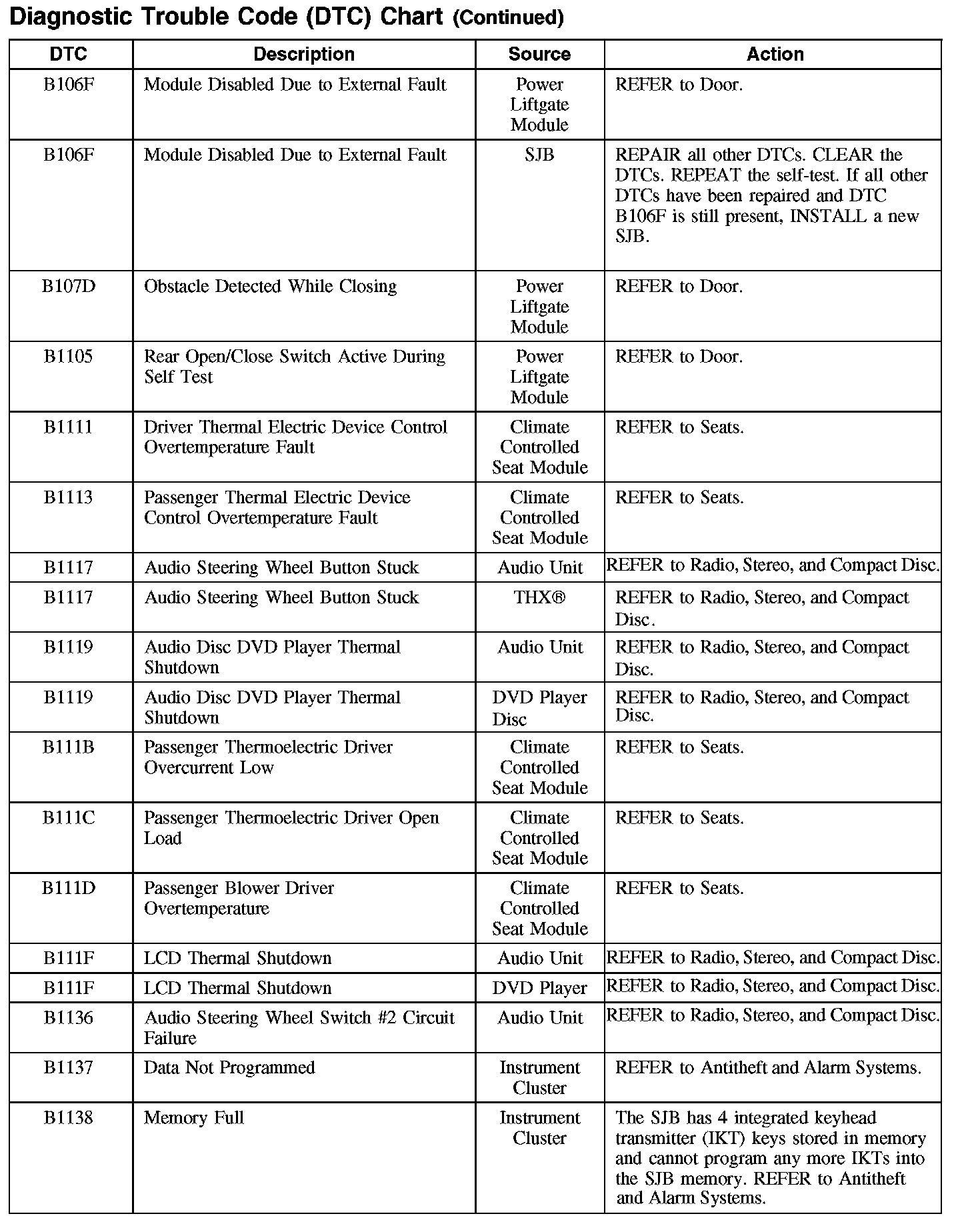 Home >> Ford >> 2007 >> Edge AWD V6-3.5L >> Repair and Diagnosis >> Body and Frame >> Body Control Systems >> Testing and Inspection >> Diagnostic Trouble Code Descriptions