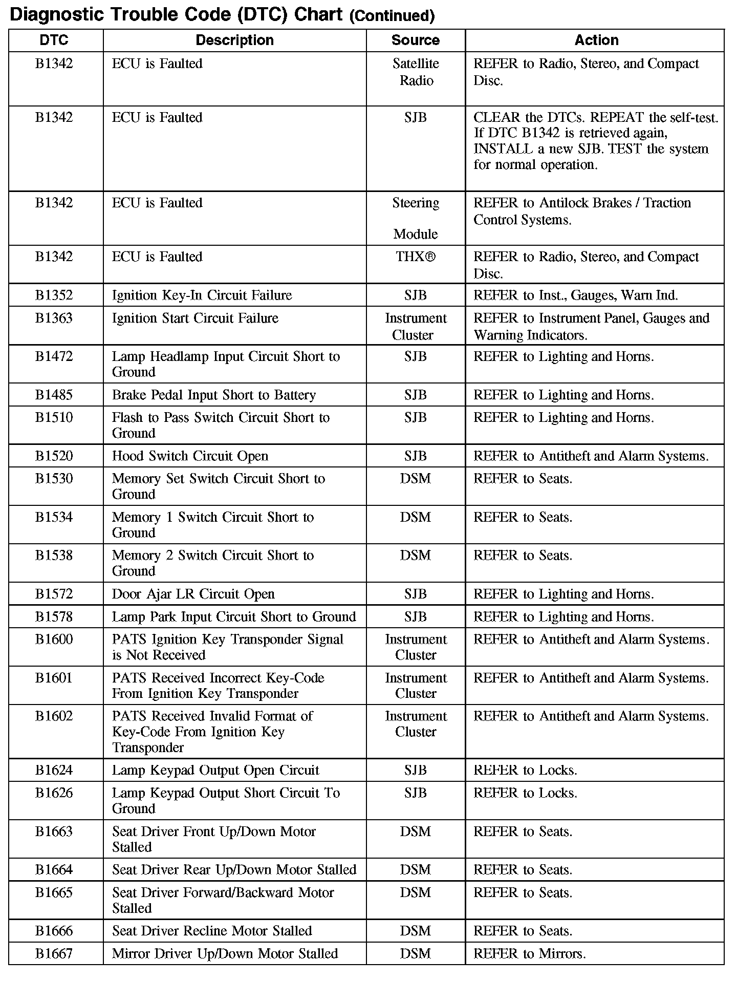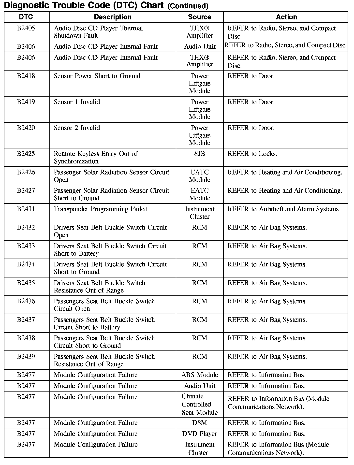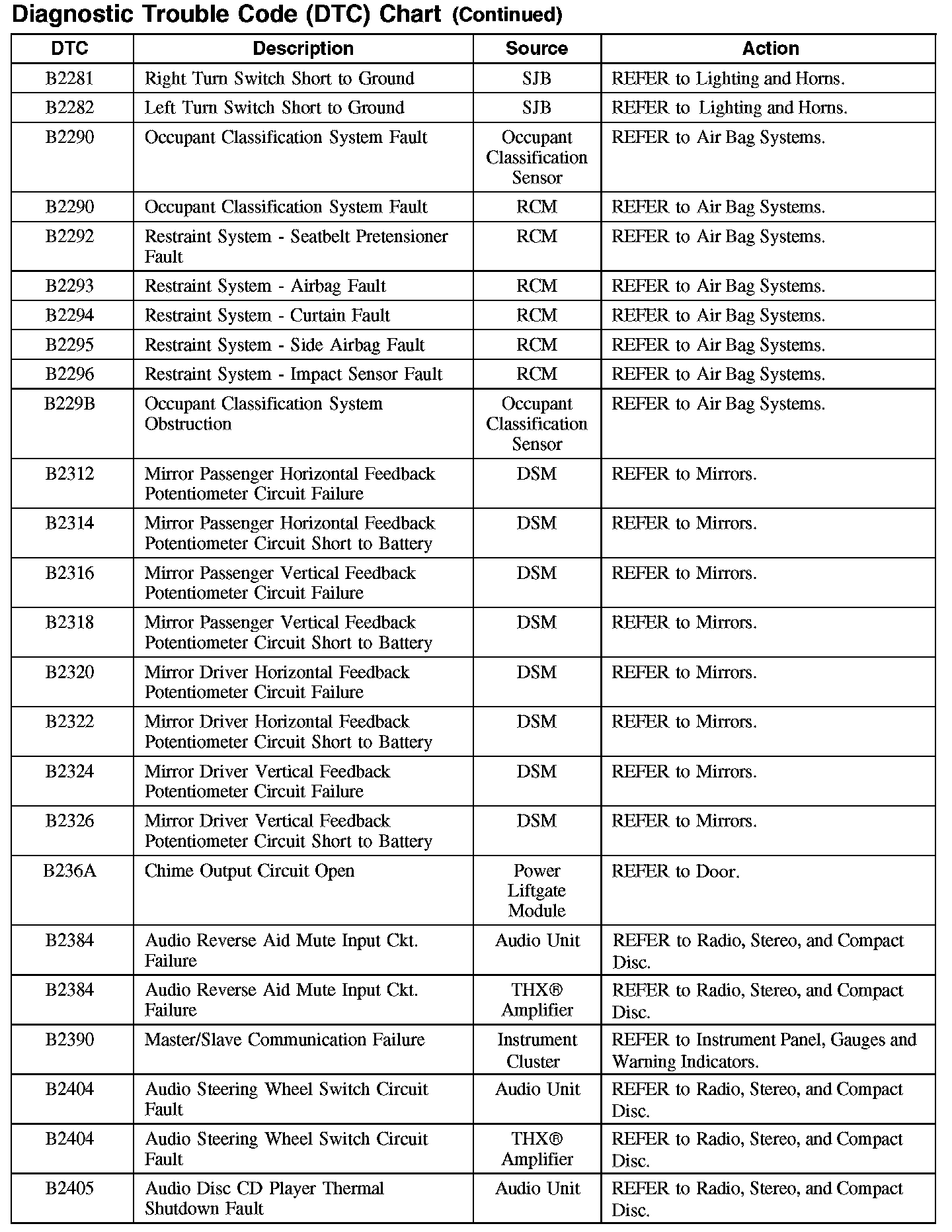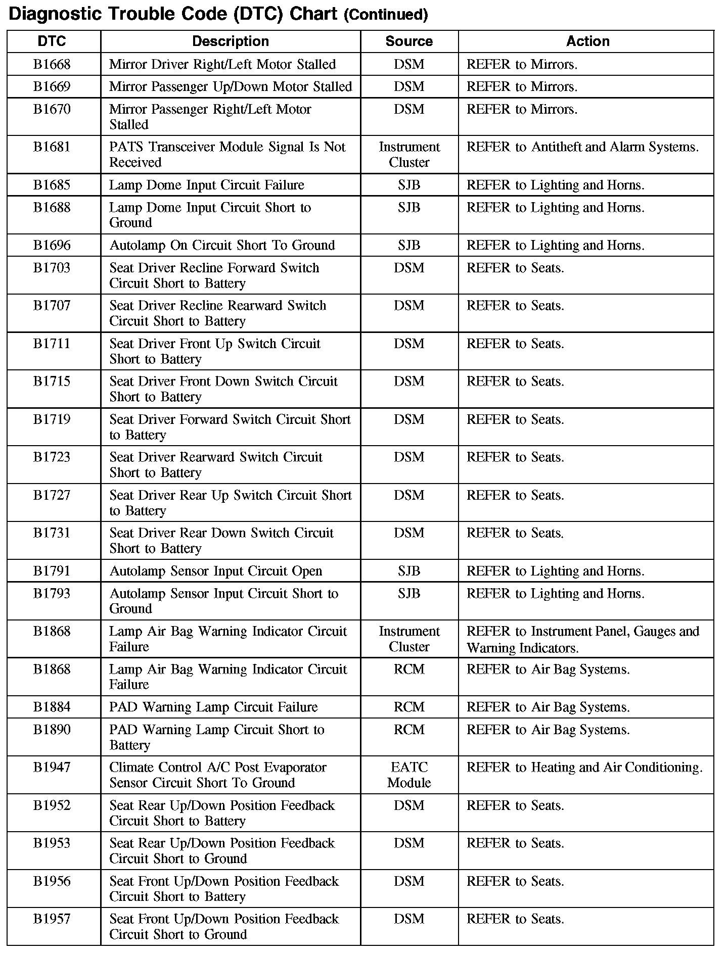 Home >> Ford >> 2007 >> Edge AWD V6-3.5L >> Repair and Diagnosis >> Body and Frame >> Body Control Systems >> Testing and Inspection >> Diagnostic Trouble Code Descriptions