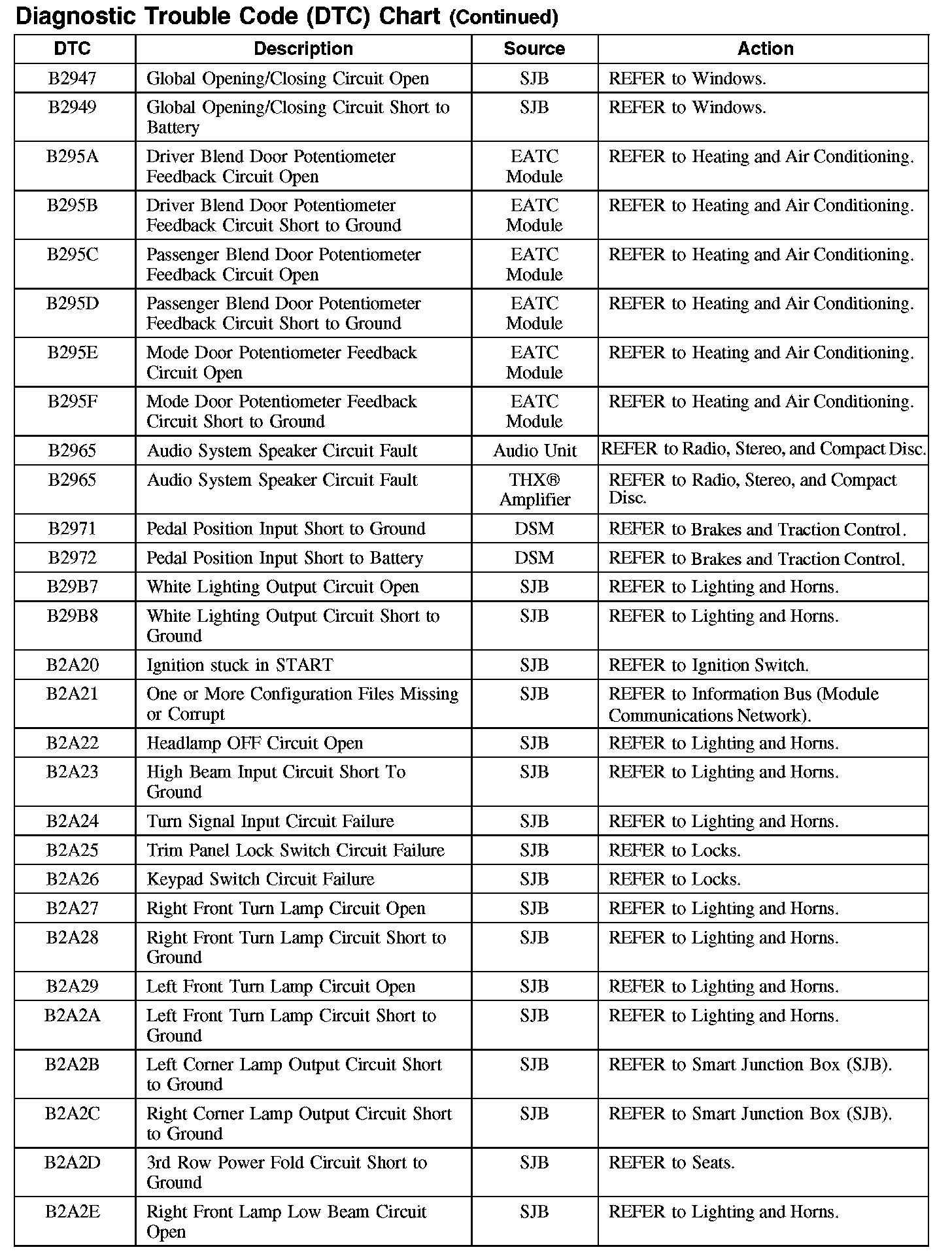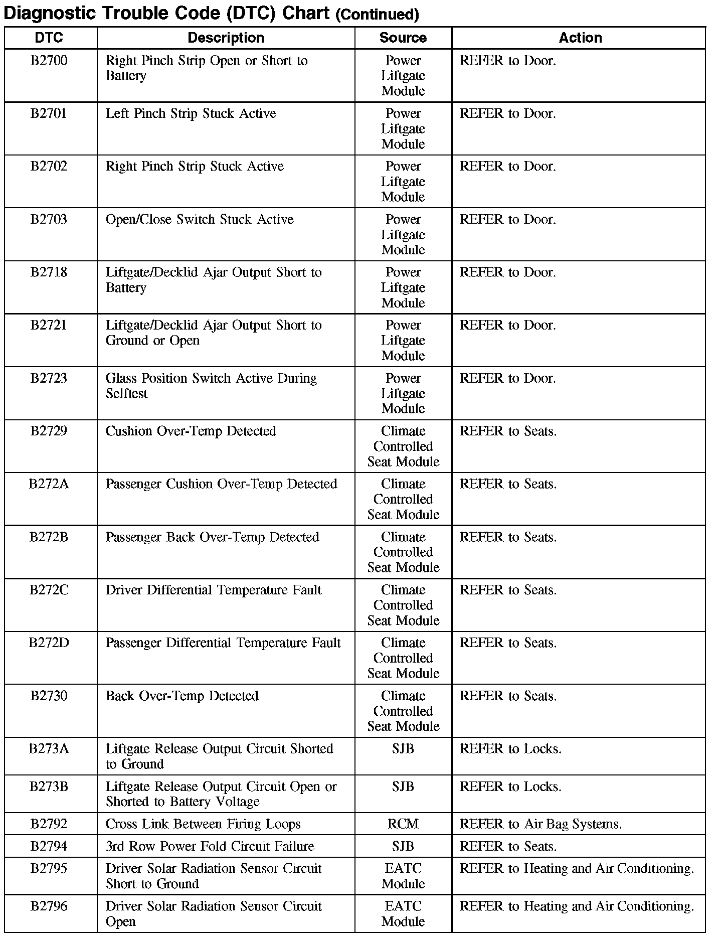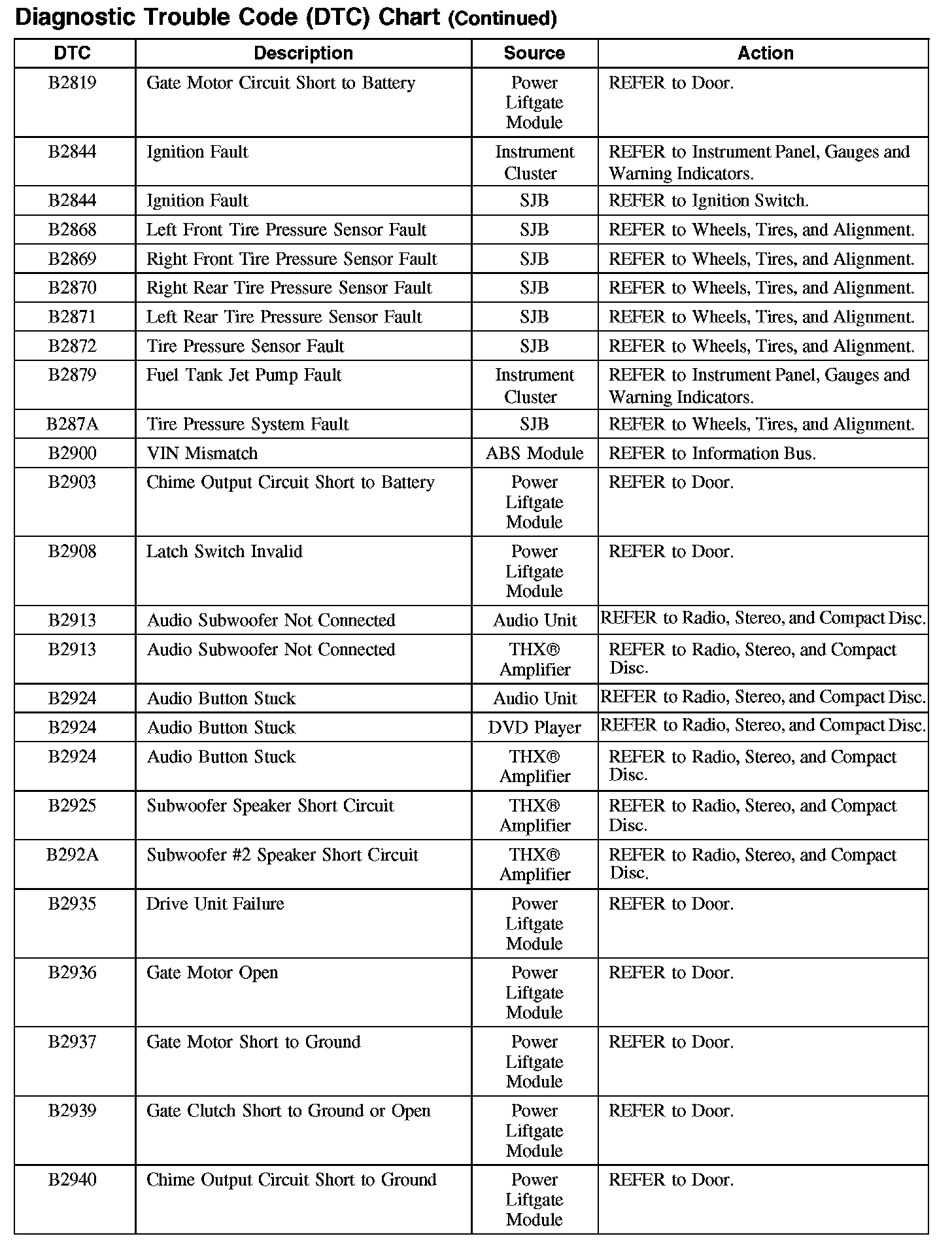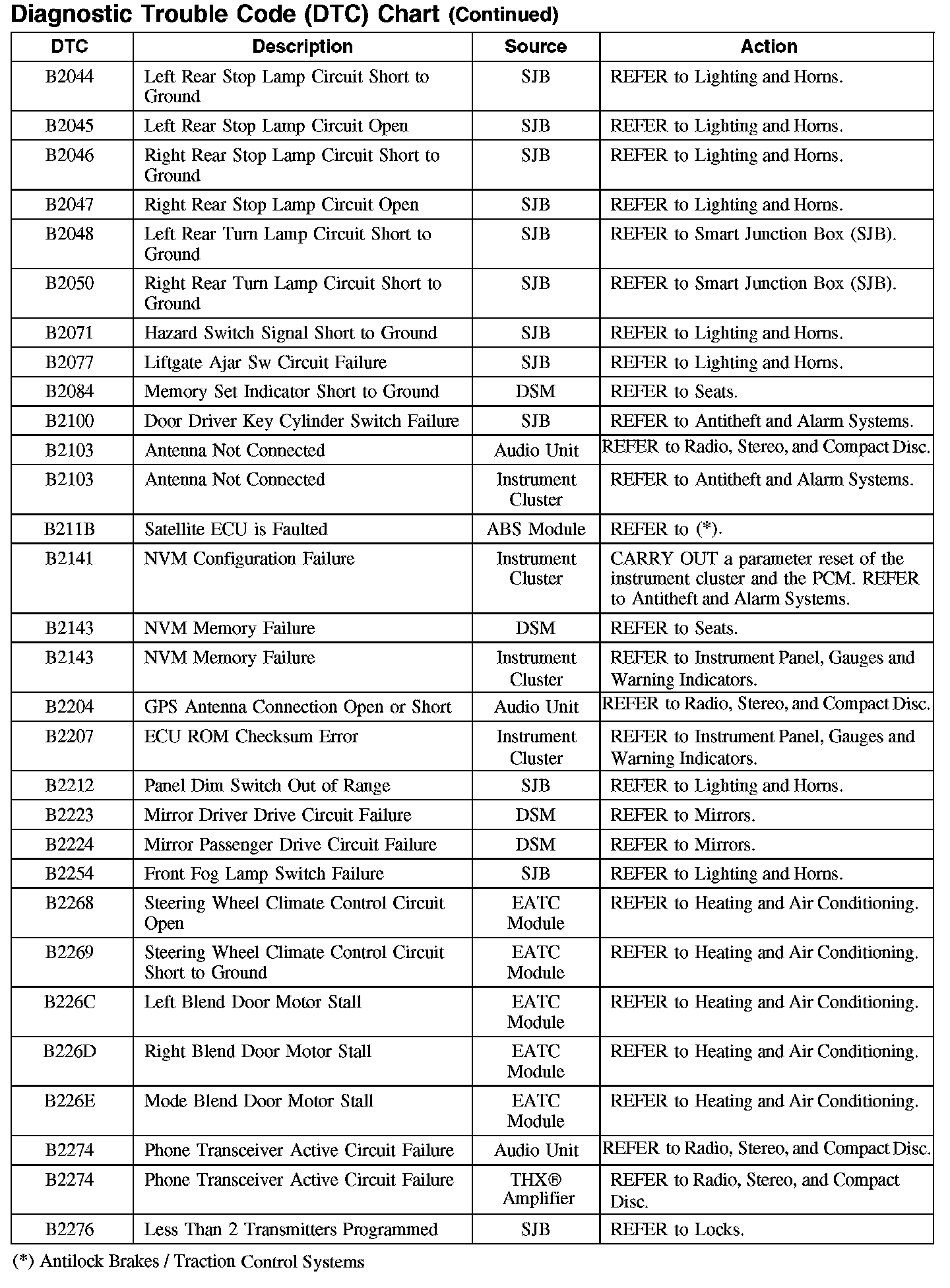 Home >> Ford >> 2007 >> Edge AWD V6-3.5L >> Repair and Diagnosis >> Body and Frame >> Body Control Systems >> Testing and Inspection >> Diagnostic Trouble Code Descriptions