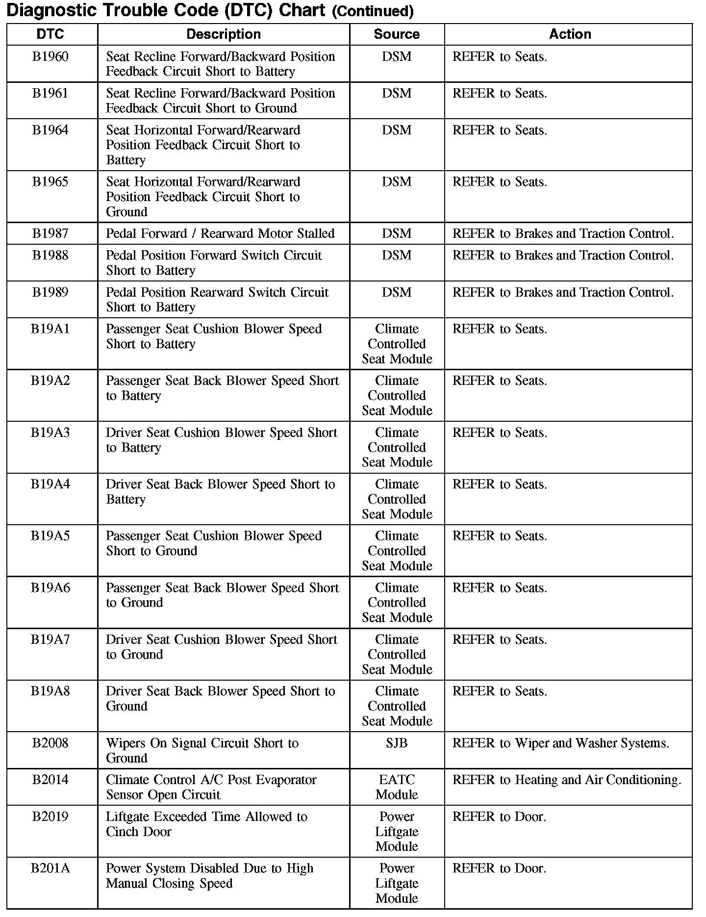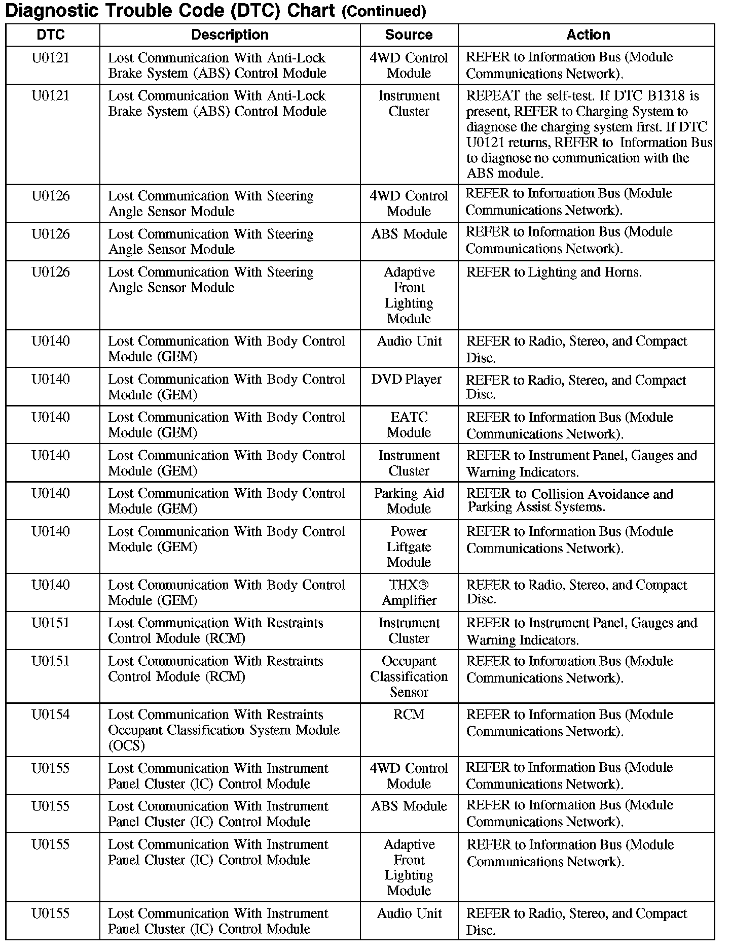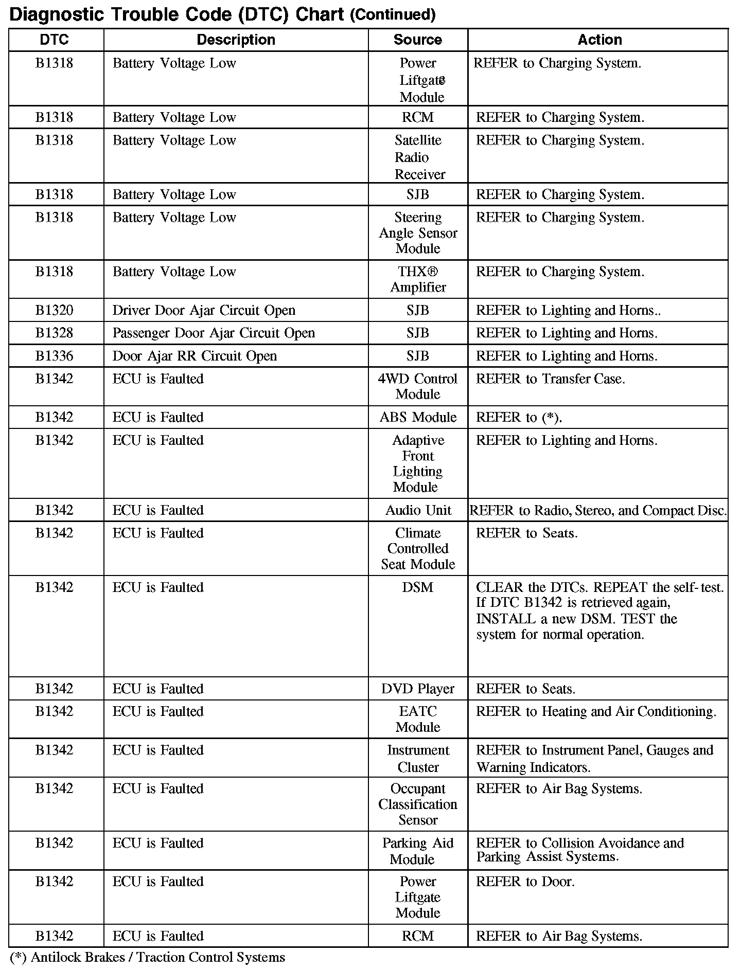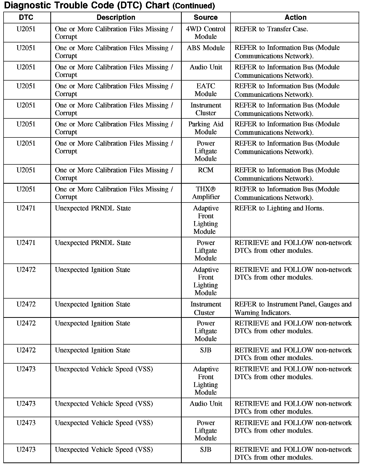 Home >> Ford >> 2007 >> Edge AWD V6-3.5L >> Repair and Diagnosis >> Body and Frame >> Body Control Systems >> Testing and Inspection >> Diagnostic Trouble Code Descriptions