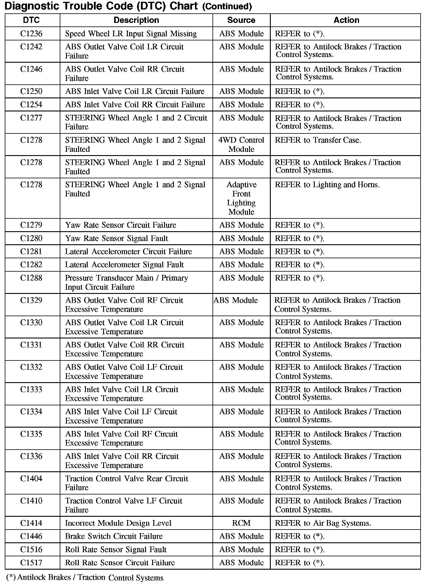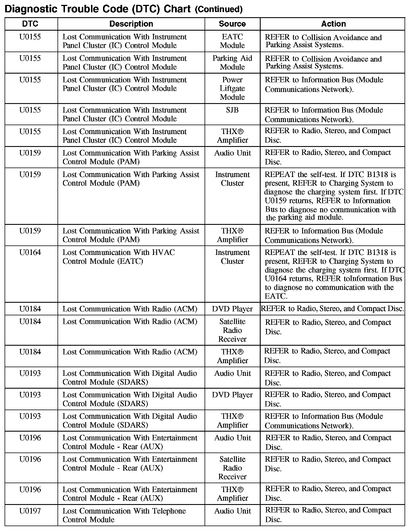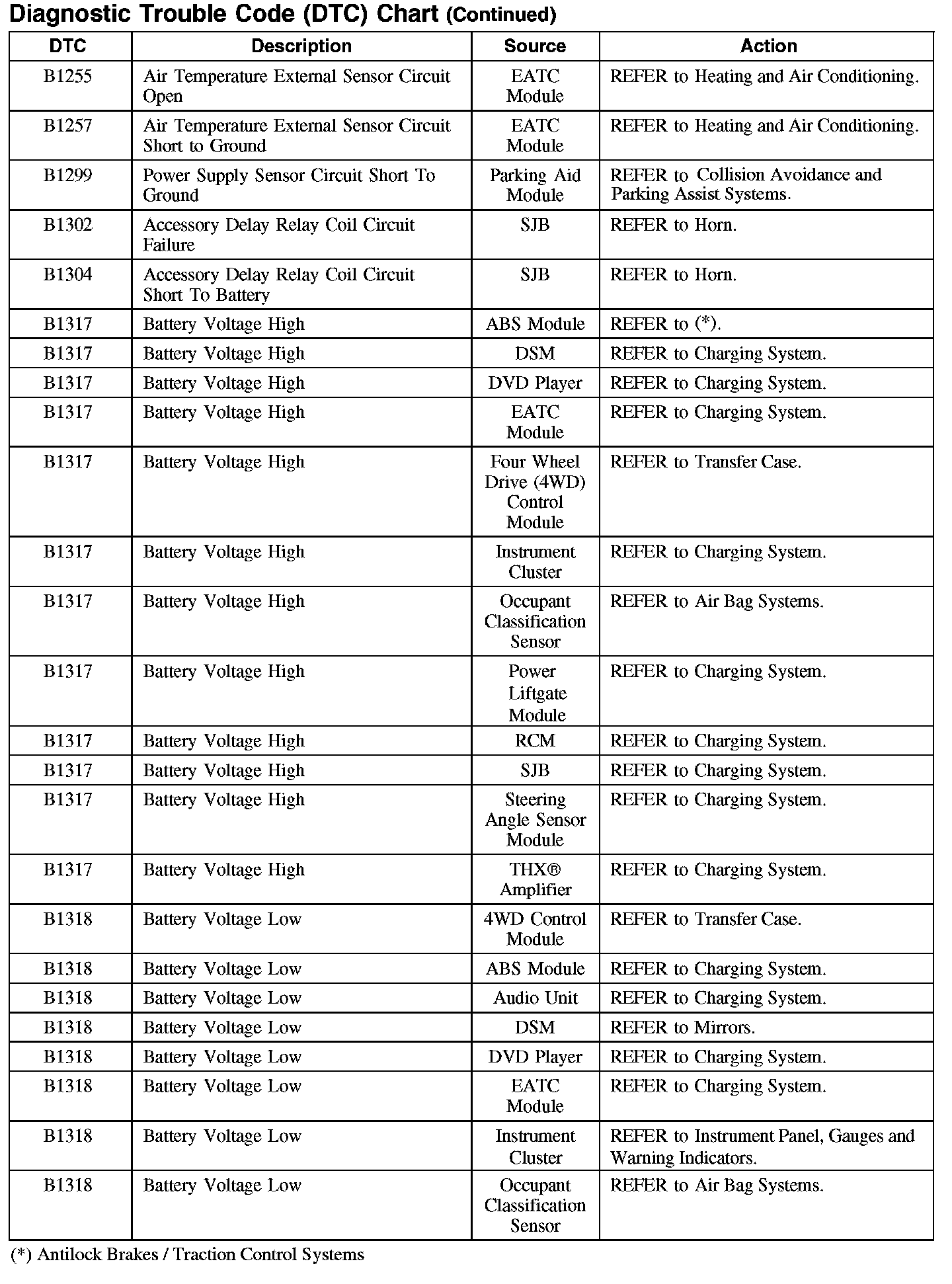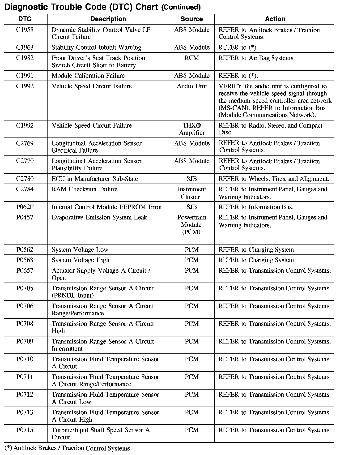DIAGNOSTIC TROUBLE CODE (DTC) CHART