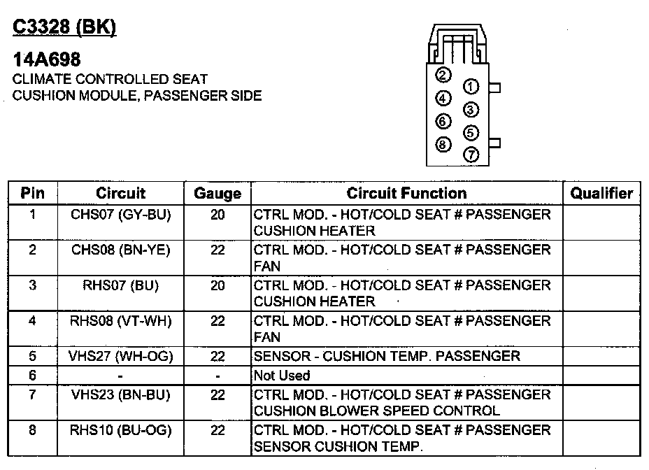 Home >> Ford >> 2007 >> Edge AWD V6-3.5L >> Repair and Diagnosis >> Diagrams >> Connector Views >> Seat Temperature Control Module >> Climate Controlled Seat Cushion Module >> Passenger Side