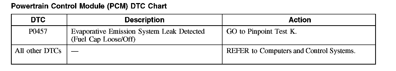 Powertrain Control Module (PCM) DTC Chart