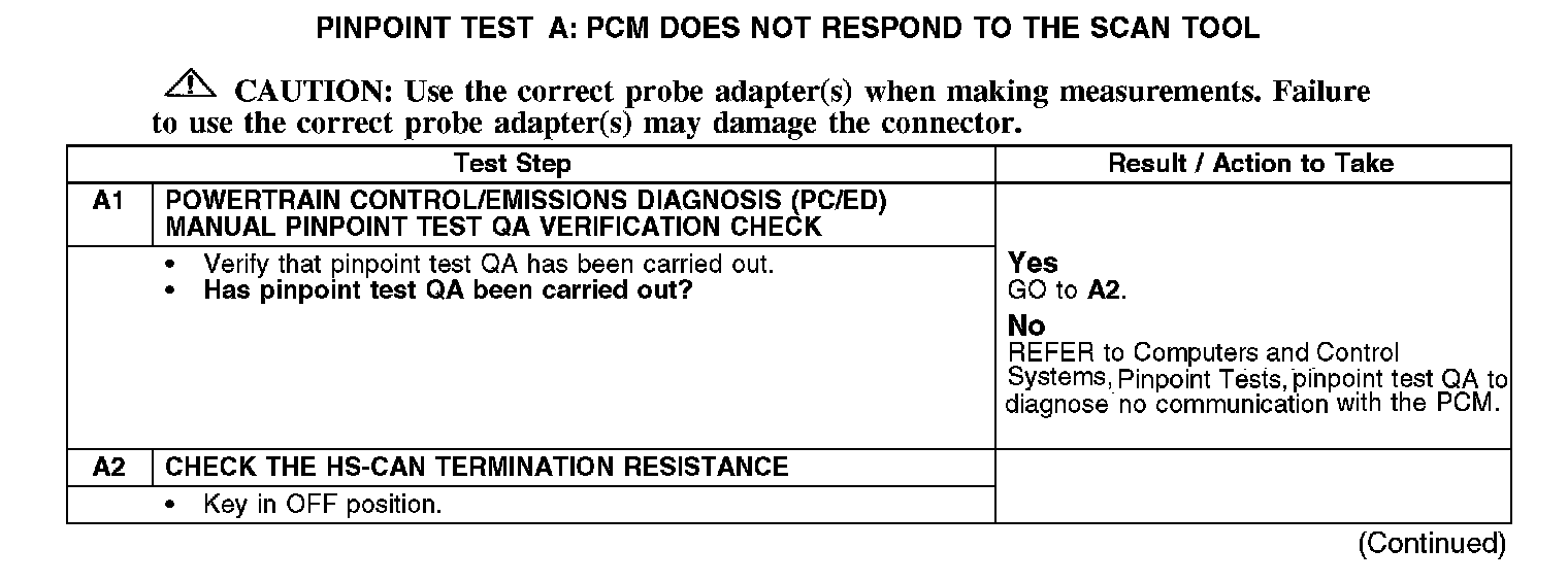 PINPOINT TEST A: THE PCM DOES NOT RESPOND TO THE SCAN TOOLA1-A2: