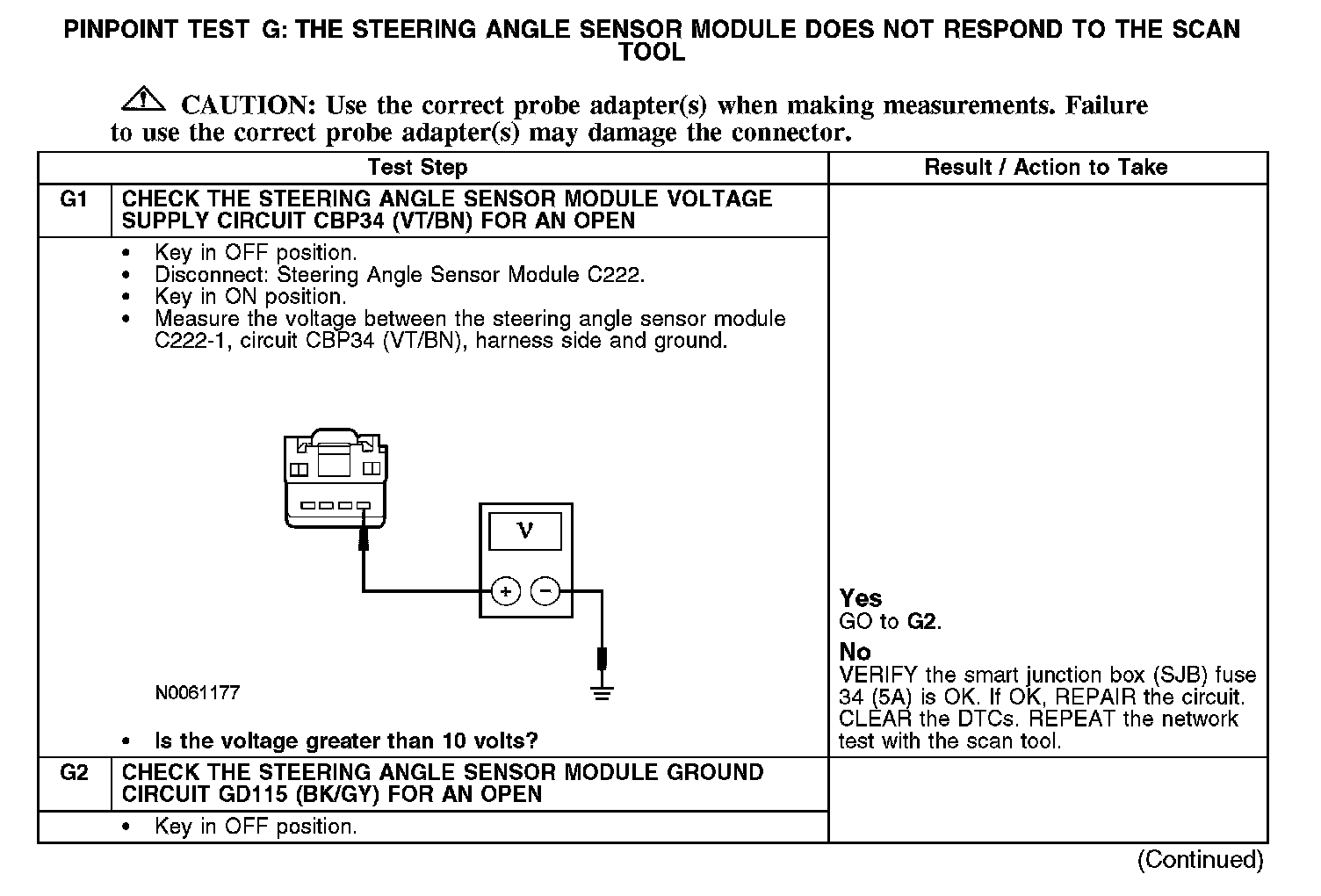 PINPOINT TEST G: THE STEERING ANGLE SENSOR MODULE DOES NOT RESPOND TO THE SCAN TOOL