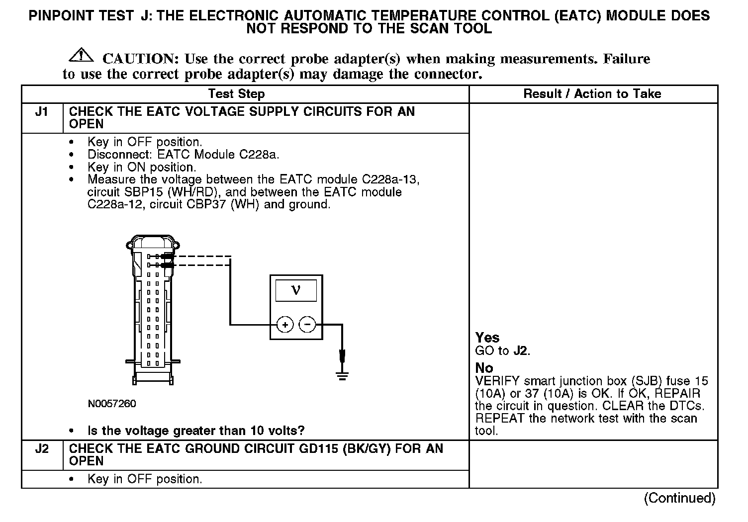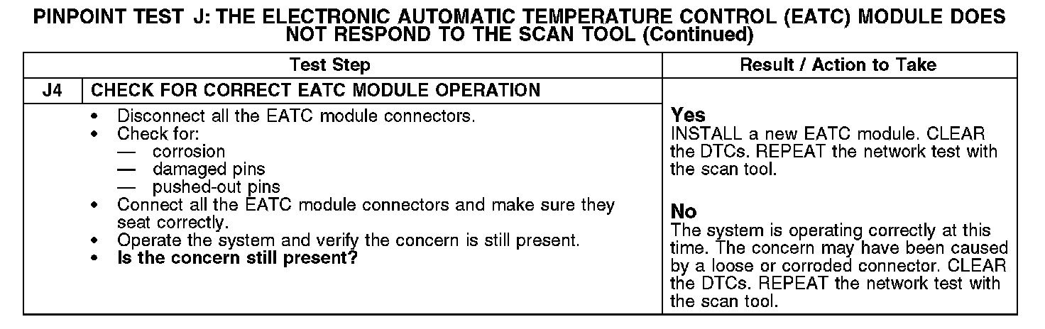 PINPOINT TEST J: THE ELECTRONIC AUTOMATIC TEMPERATURE CONTROL (EATC) MODULE DOES NOT RESPOND TO THE SCAN TOOL