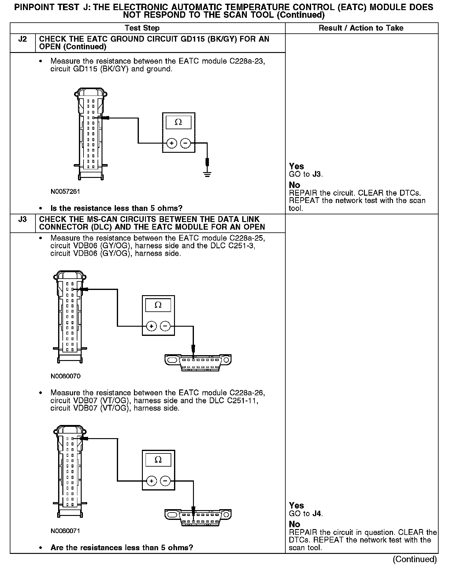 Home >> Ford >> 2007 >> Edge AWD V6-3.5L >> Repair and Diagnosis >> Powertrain Management >> Computers and Control Systems >> Information Bus >> Testing and Inspection >> Pinpoint Tests >> Test J: The Electronic Automatic Temperature Control (EATC) Module Does Not Respond To The Scan Tool