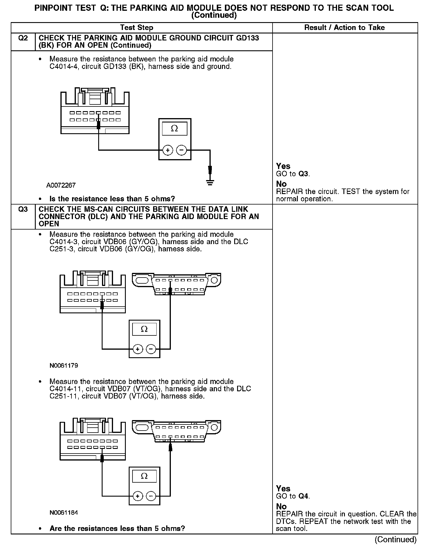 PINPOINT TEST Q: THE PARKING AID MODULE DOES NOT RESPOND TO THE SCAN TOOLQ1-Q2: