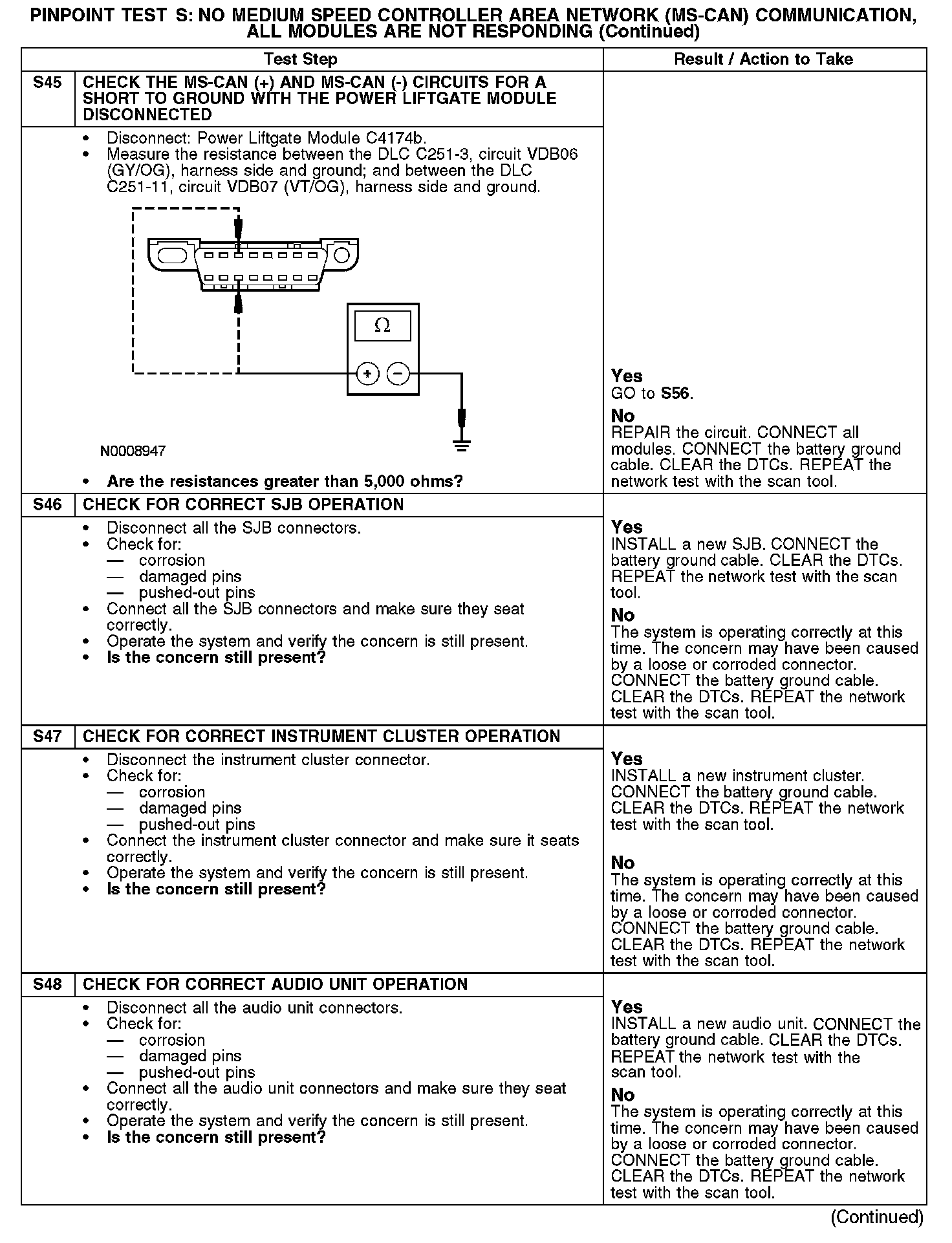 Test S: No Medium Speed Controller Area Network (MS-CAN) Communication, All Modules Are Not Responding