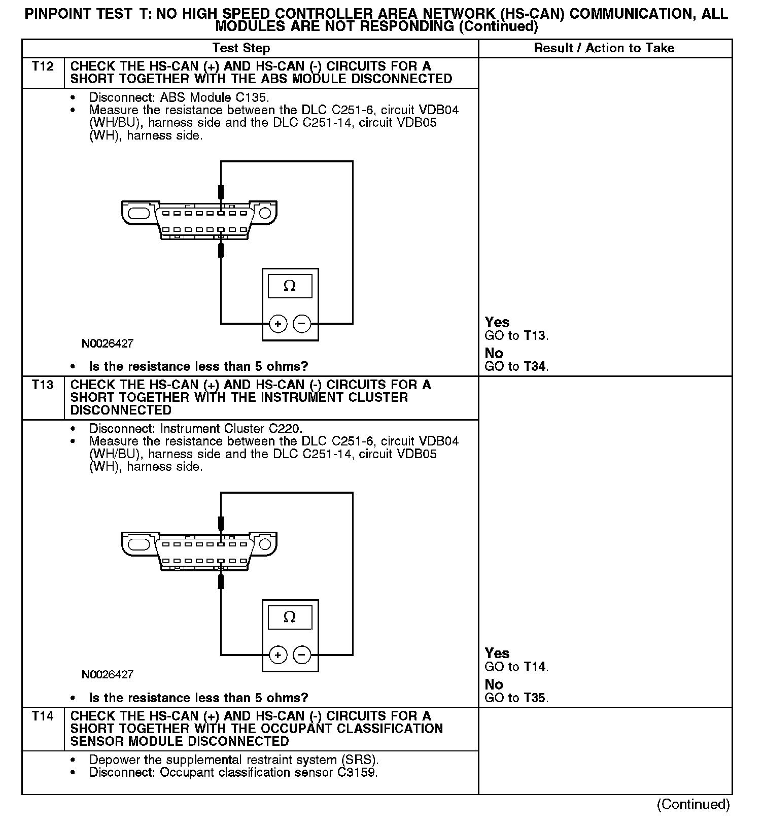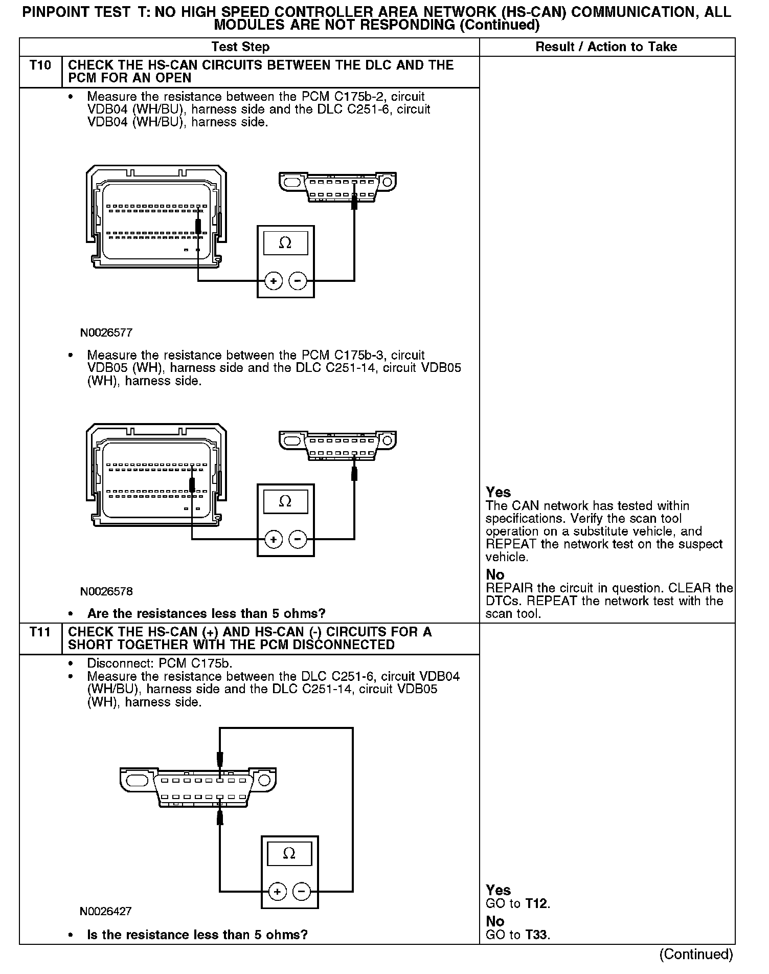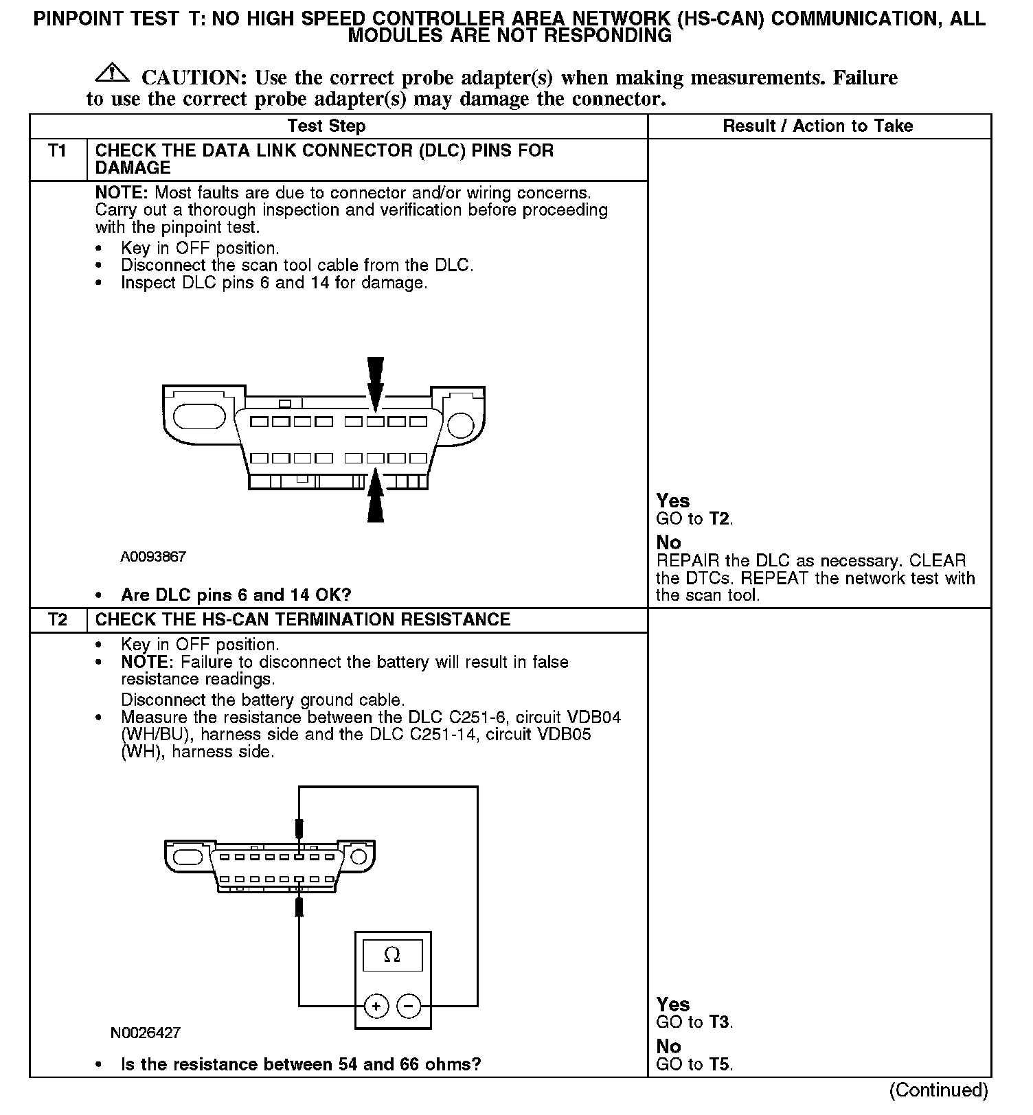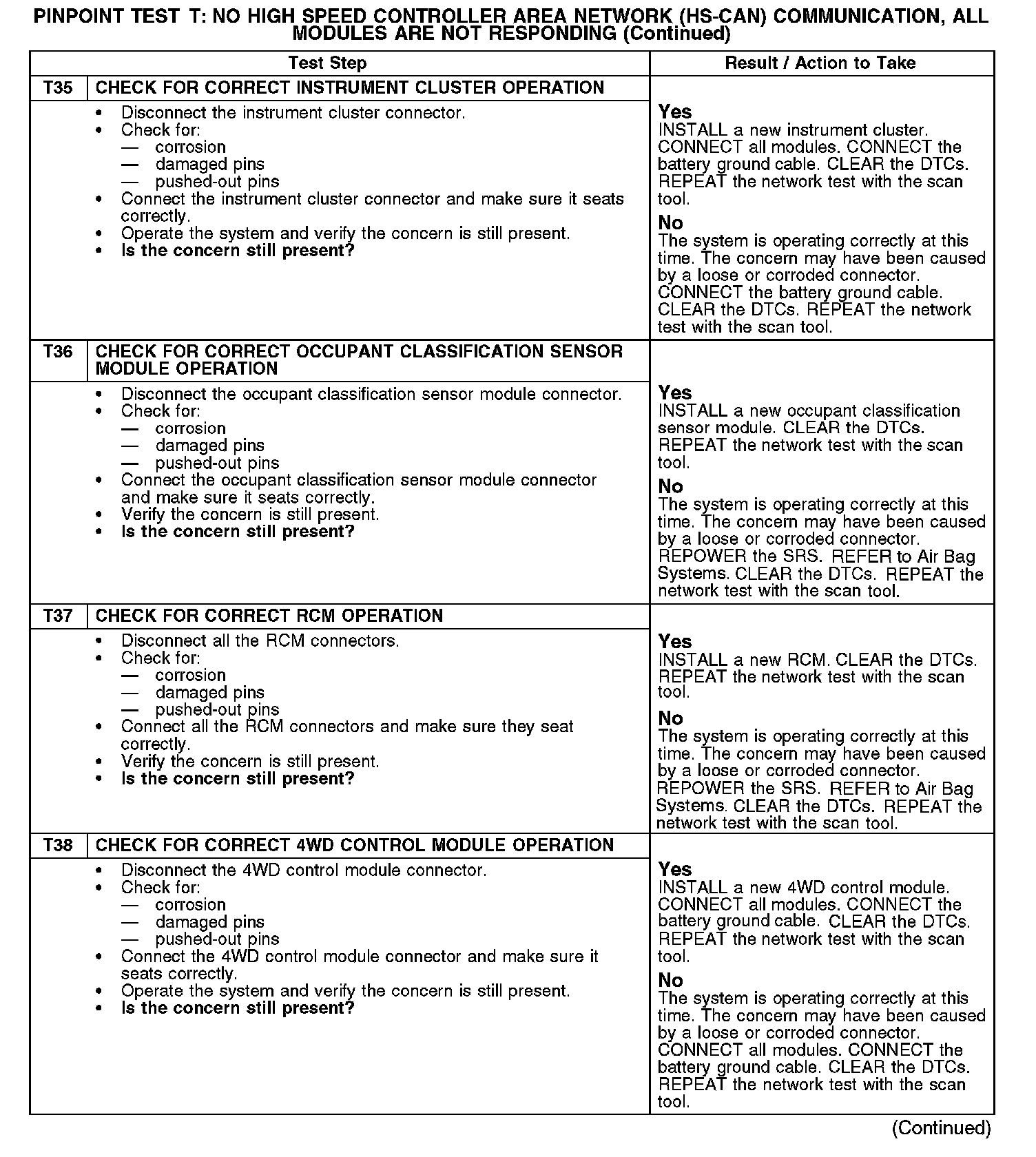 Test T: No High Speed Controller Area Network (HS-CAN) Communication, All Modules Are Not Responding