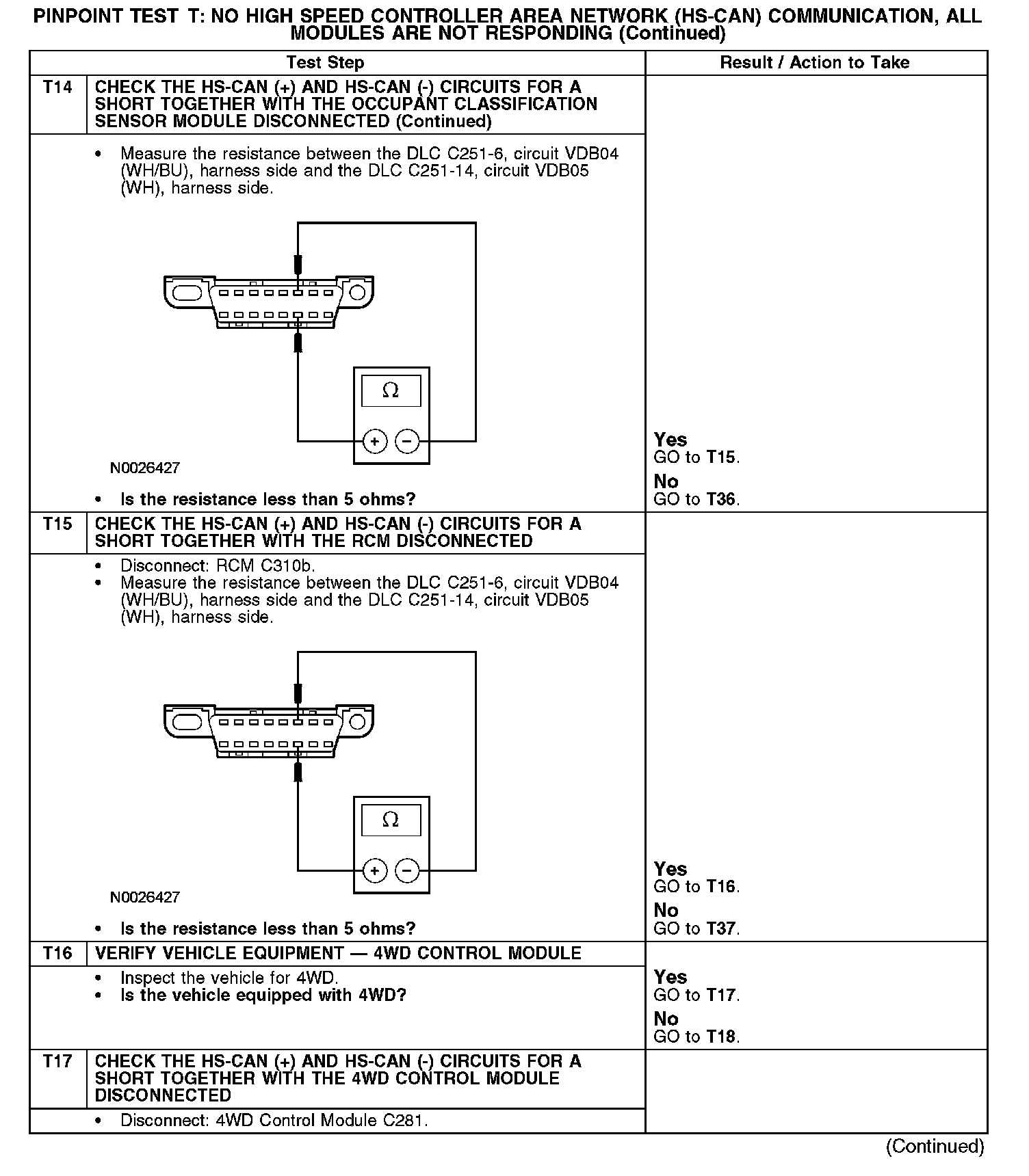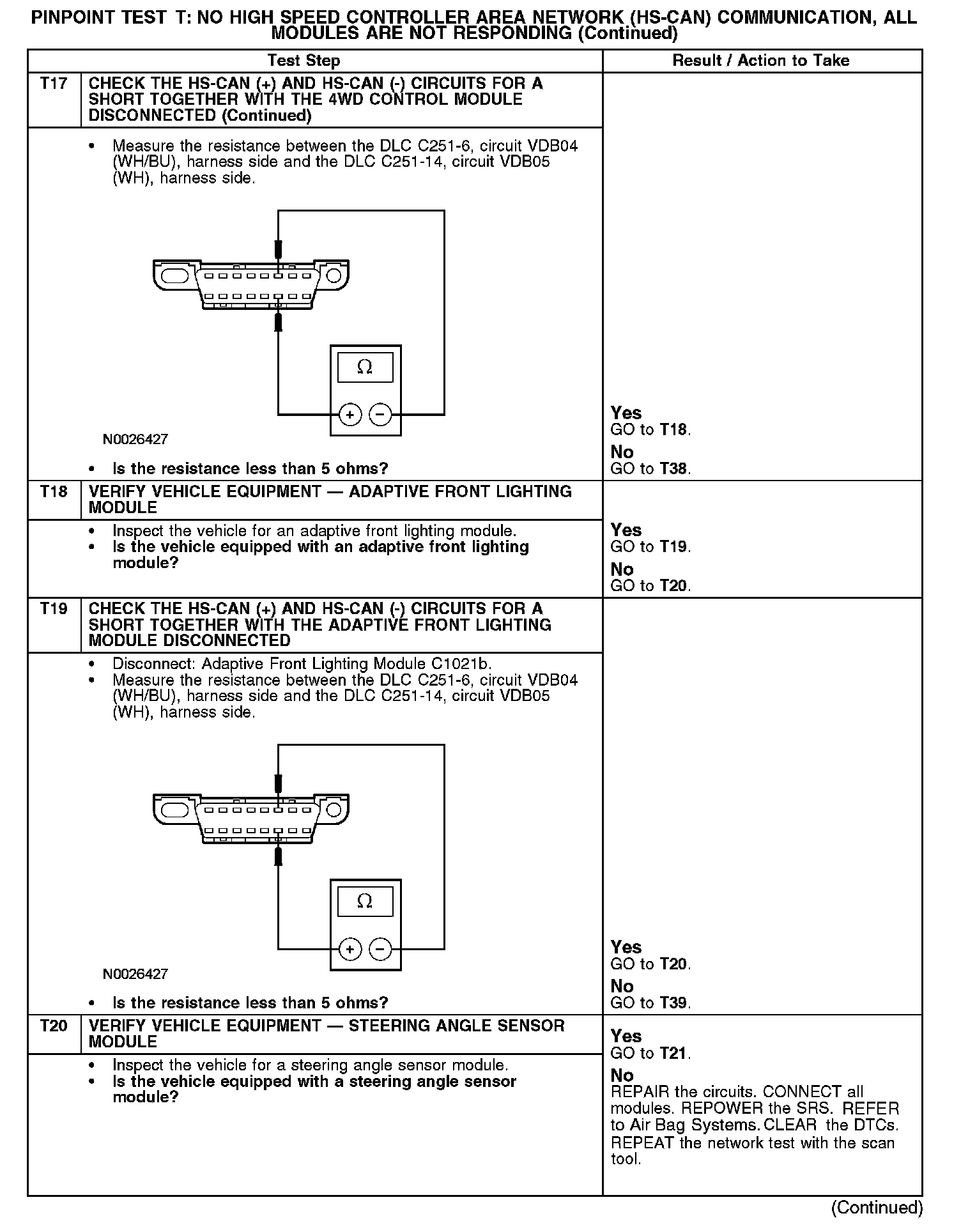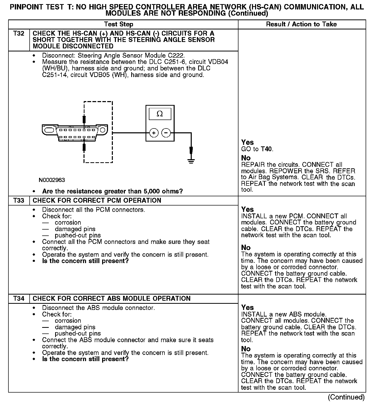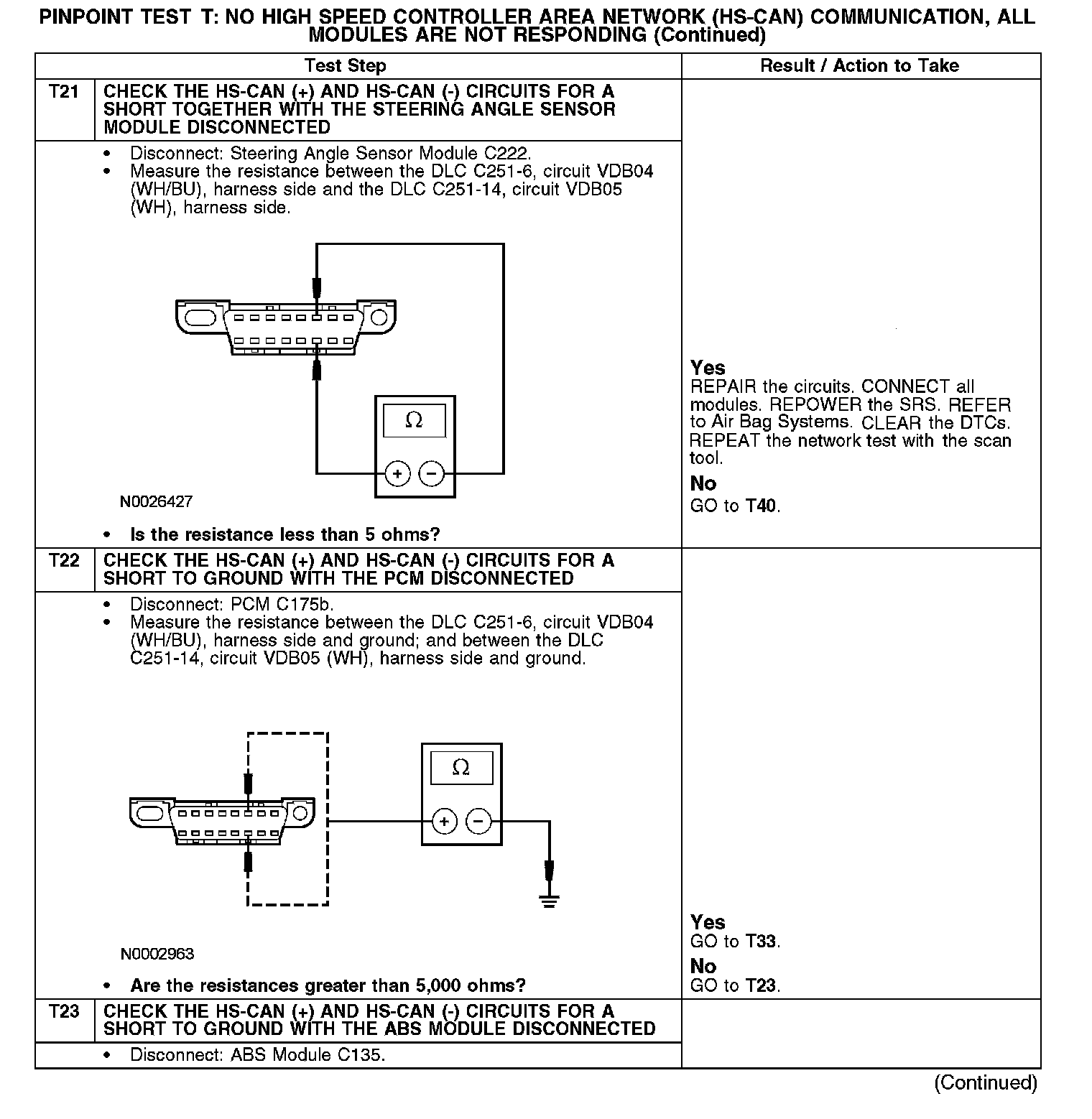 Test T: No High Speed Controller Area Network (HS-CAN) Communication, All Modules Are Not Responding