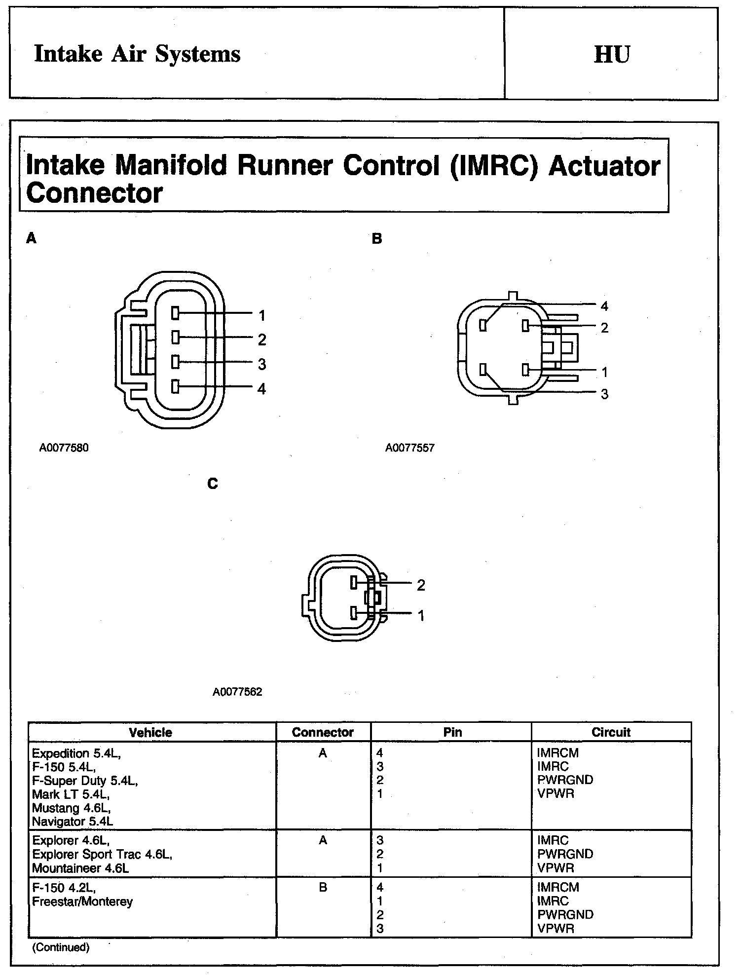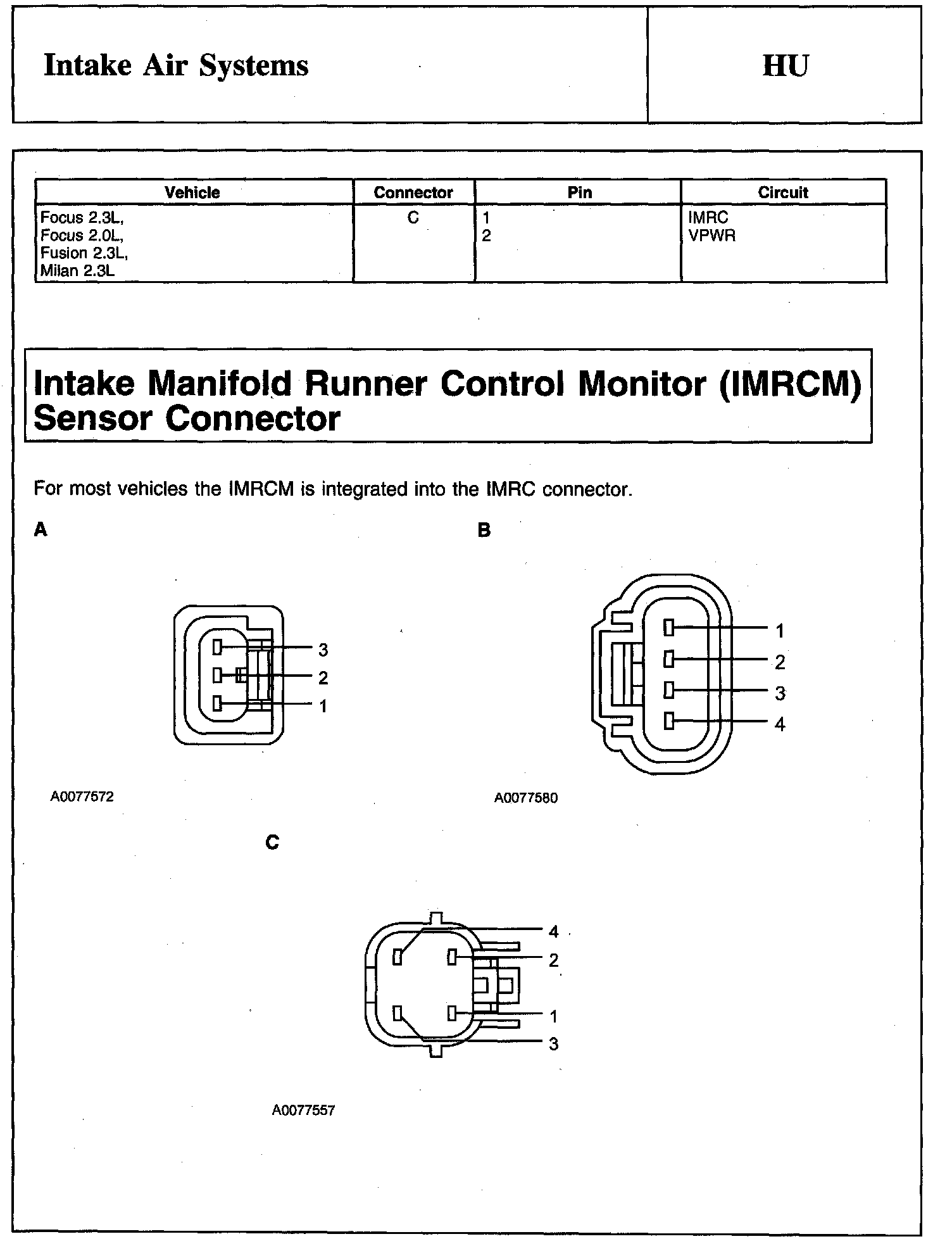 Intake Manifold Runner Control (IMRC) Actuator Connector And Intake Manifold Runner Control Monitor (IMRCM) Sensor Connector: