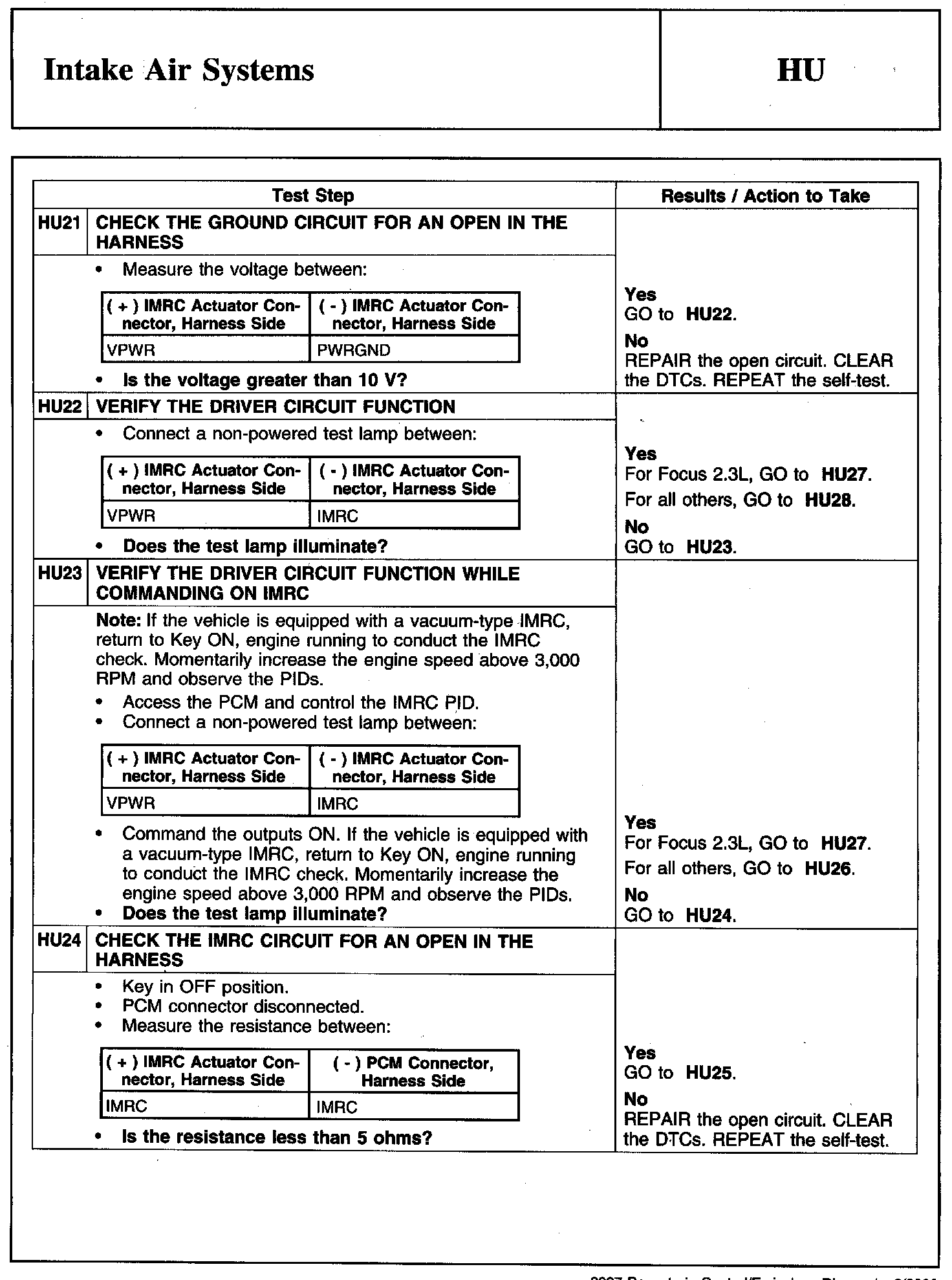 Home >> Ford >> 2007 >> Edge AWD V6-3.5L >> Repair and Diagnosis >> Powertrain Management >> Computers and Control Systems >> Testing and Inspection >> Pinpoint Tests >> Tests HU: Intake Air System