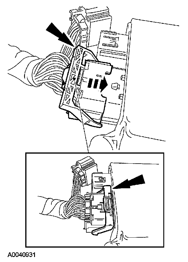 - CAUTION: Do not push the connector to the point where the lever pivots and seats itself. Light pressure is needed to get the connector into position on the restraints control module (RCM), before using the lever to fully seat the connector. Failure to follow these instructions may cause component or connector damage.