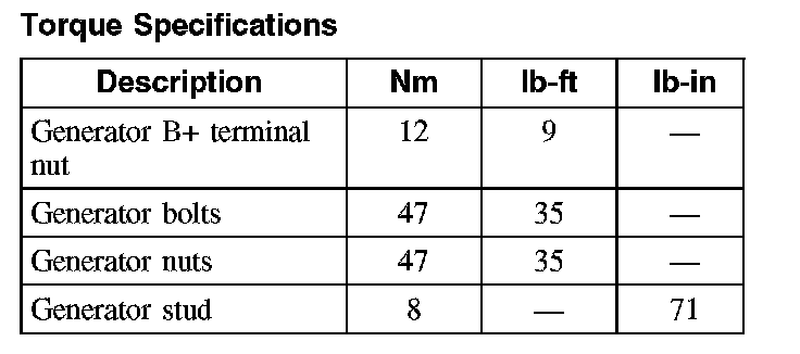 Torque Specifications: