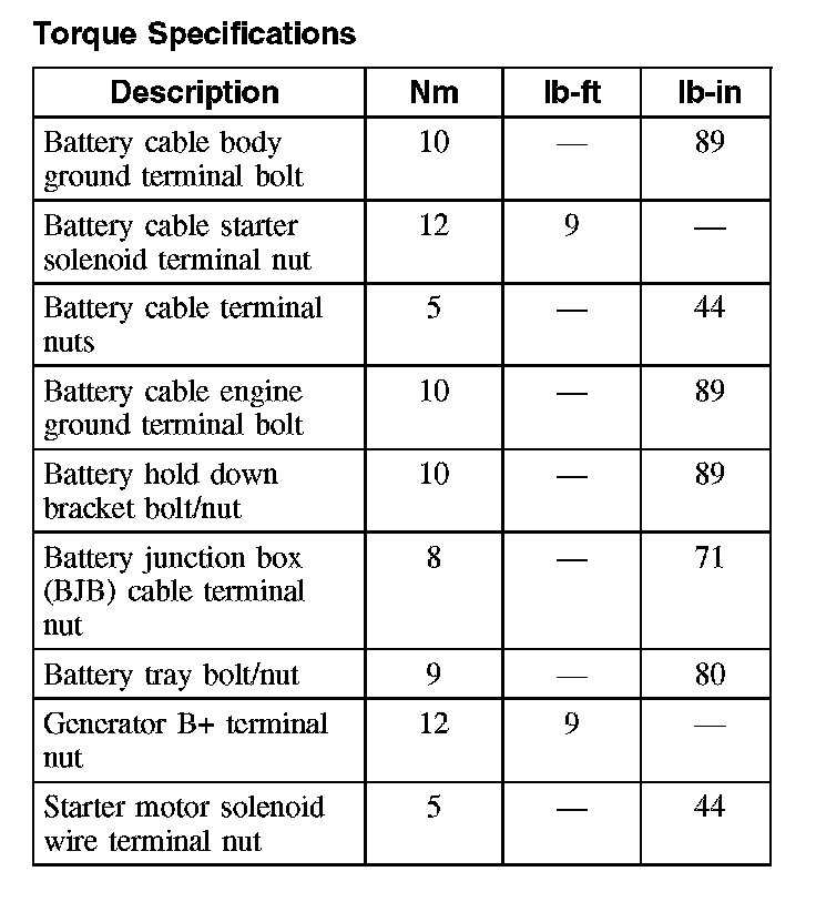 Torque Specifications: