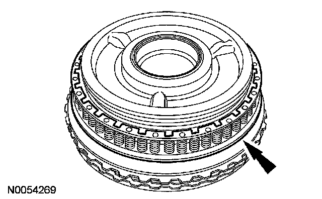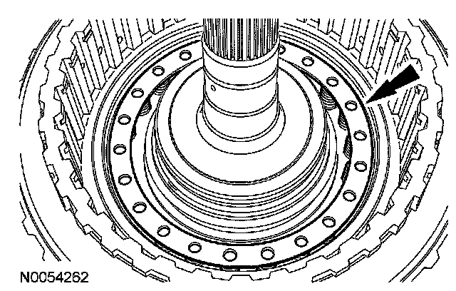 15. NOTE: Install the overdrive clutch piston return spring so that the holes are facing up.