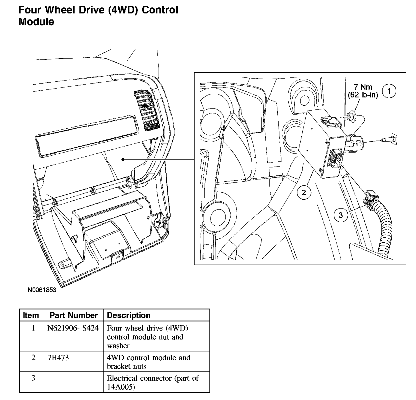 ^ To install, tighten to 7 Nm (62 inch lbs).