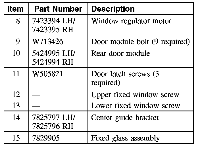 GLASS, FRAMES AND MECHANISMS - EXPLODED VIEW, FRONT DOORGLASS, FRAMES AND MECHANISMS - EXPLODED VIEW, REAR DOOR