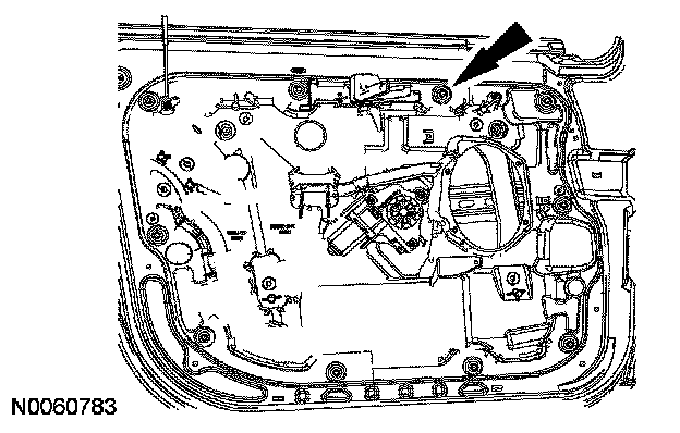 6. Lower the window regulator downward until it reaches the stops at the bottom of the regulator tracks.