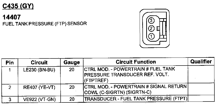 Fuel Tank Pressure Sensor: Diagrams