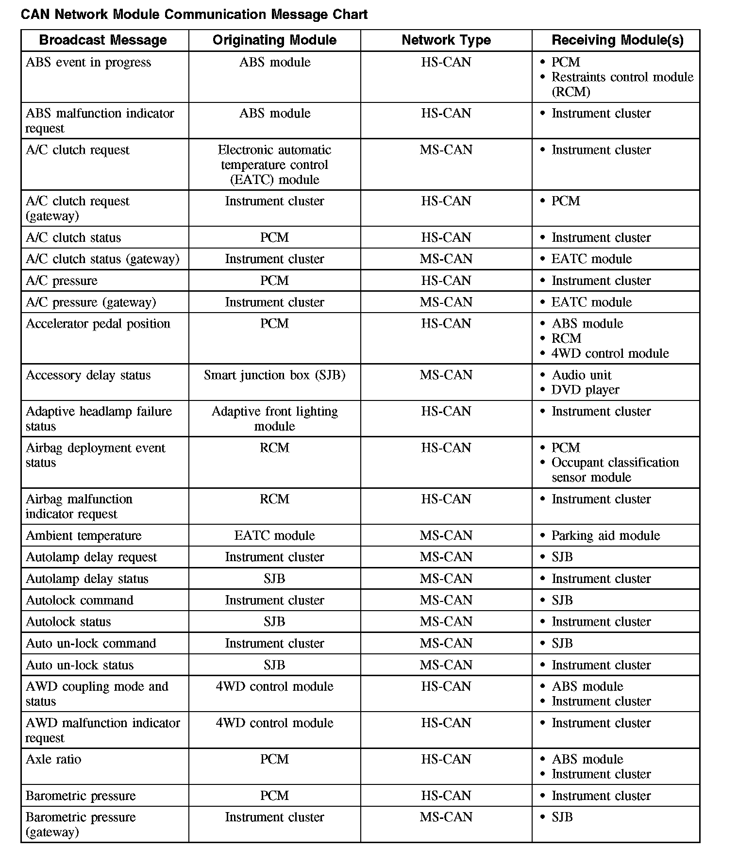 Home >> Ford >> 2007 >> Edge FWD V6-3.5L >> Repair and Diagnosis >> Powertrain Management >> Computers and Control Systems >> Information Bus >> Testing and Inspection >> Initial Inspection and Diagnostic Overview >> Module Communications Network >> Principles of Operation