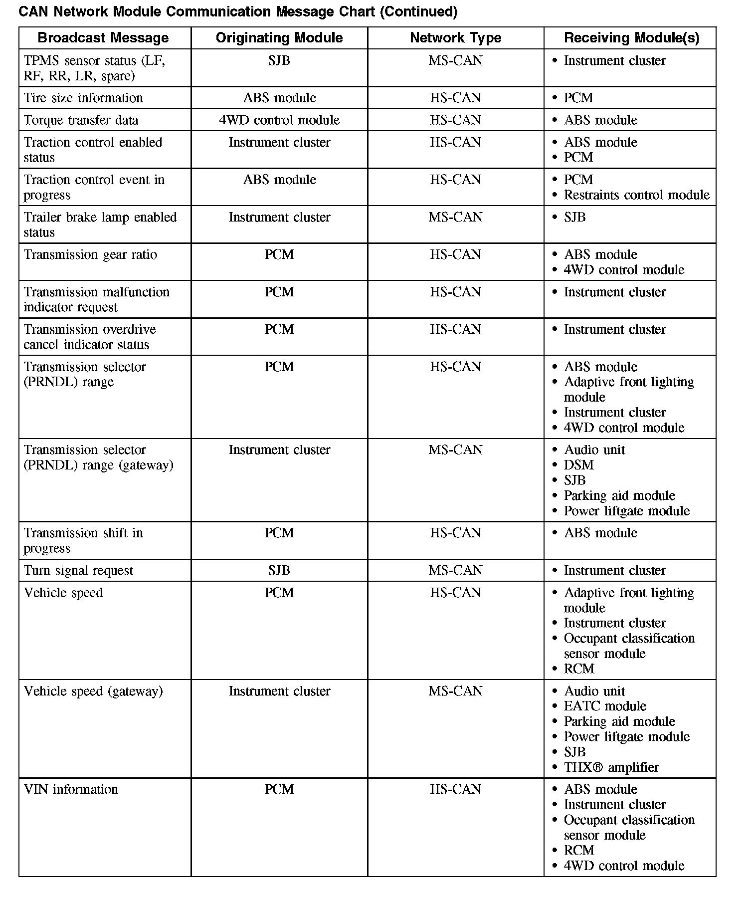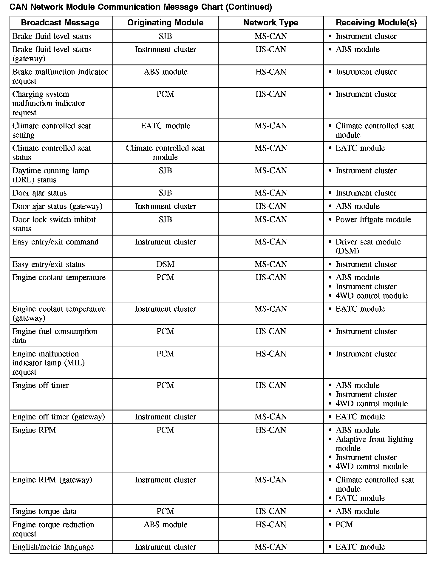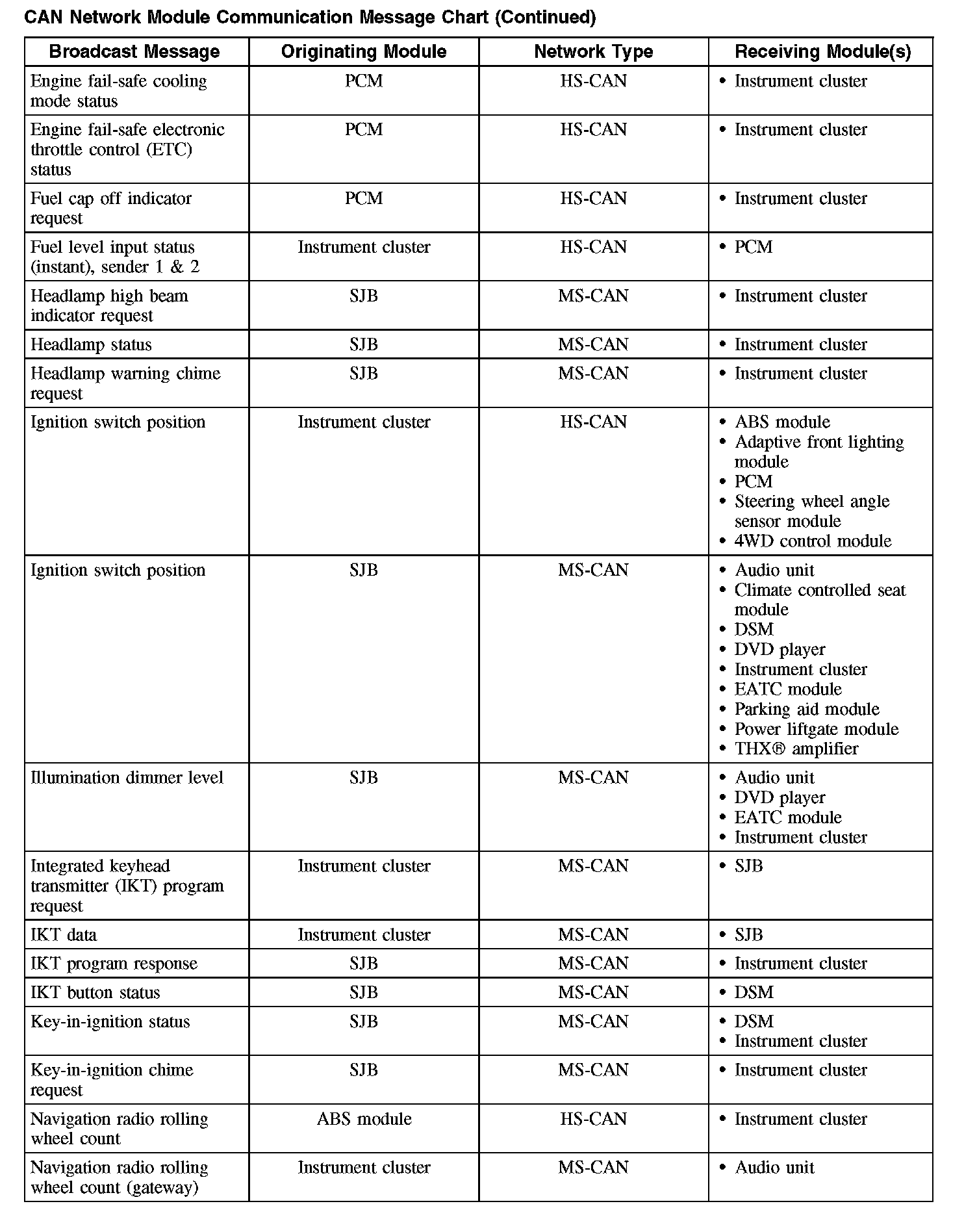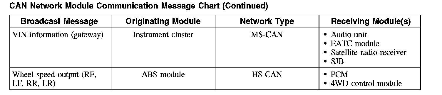The MS-CAN network operates at a maximum data transfer speed of 125 Kbps for bus messages and is designed for general information transfer. The HS-CAN network operates at a maximum data transfer speed of 500 Kbps and is designed for real time information transfer and control.