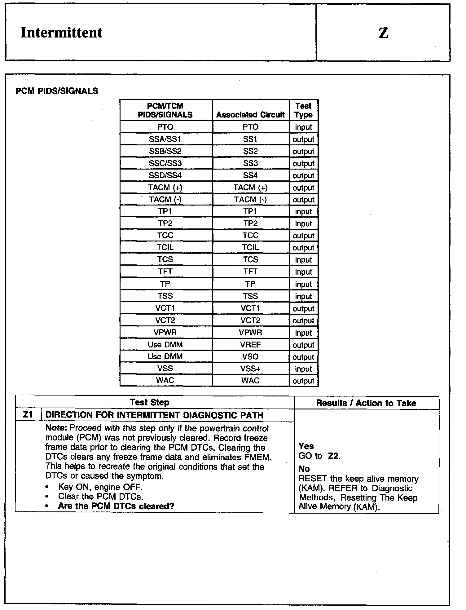 PINPOINT TEST Z: INTERMITTENT