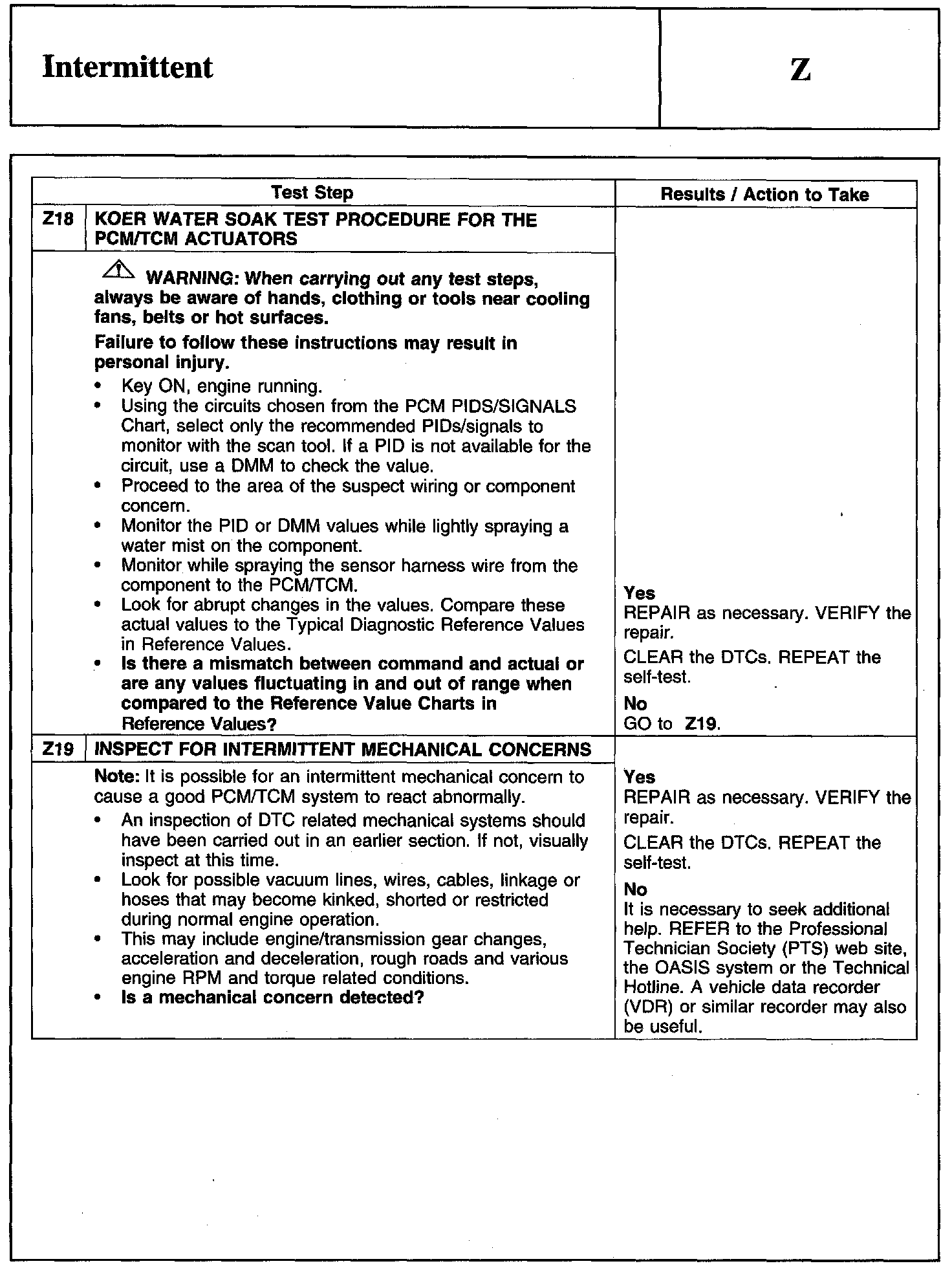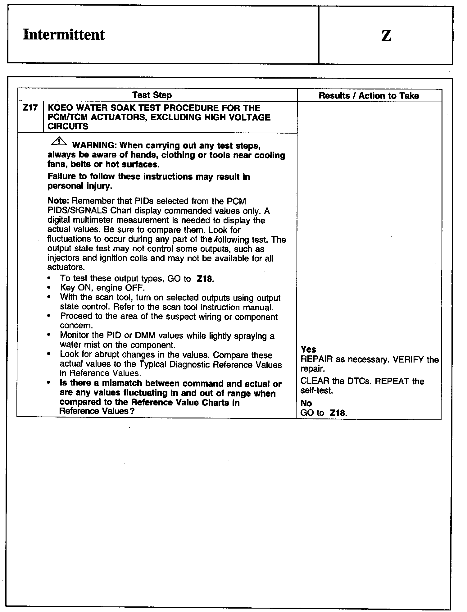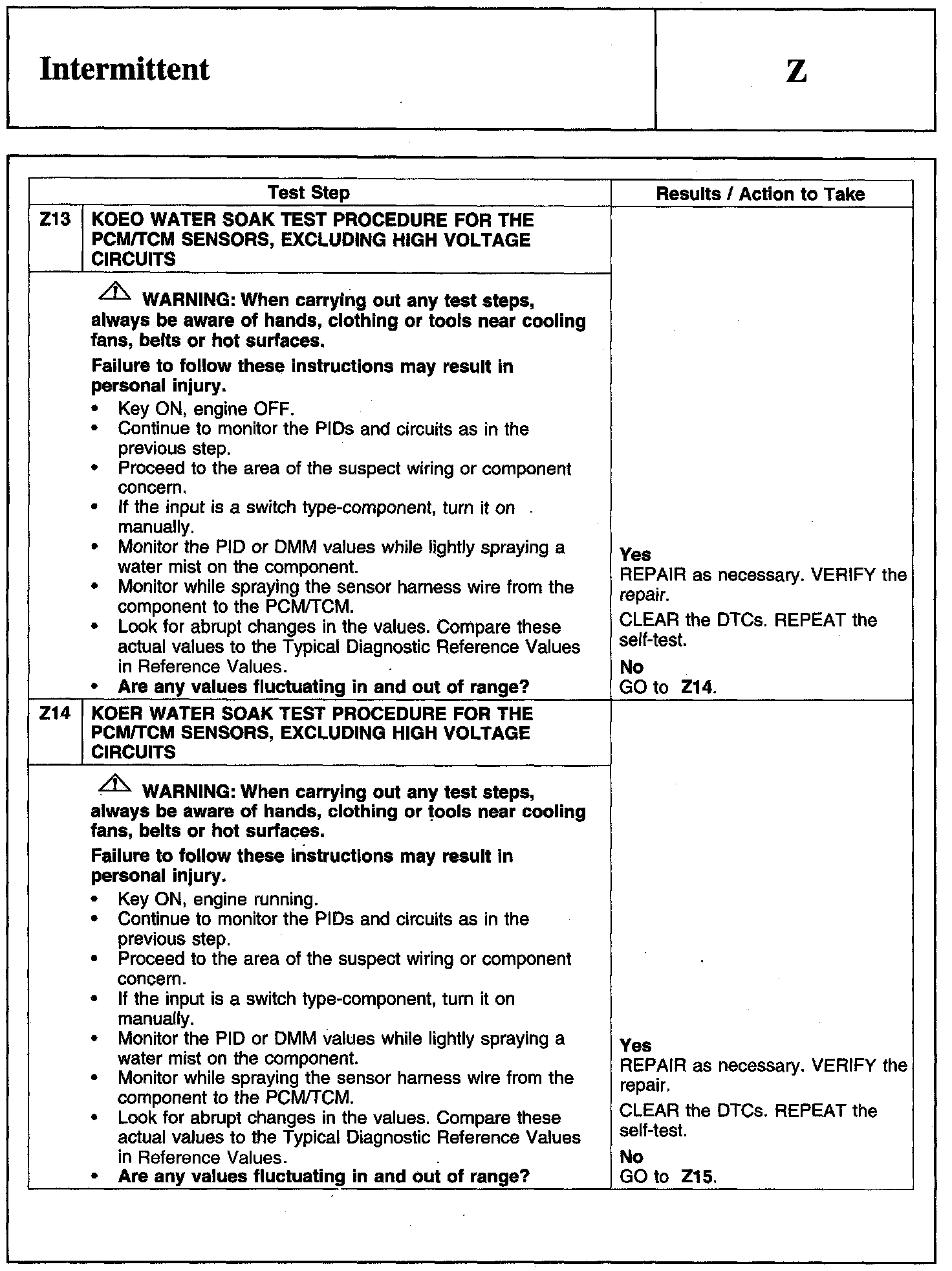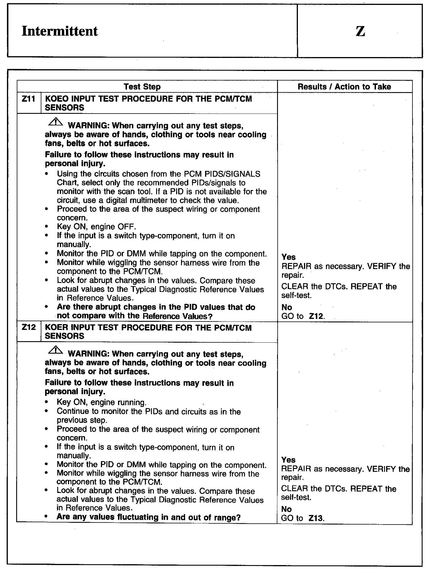 Test Z: Intermittent