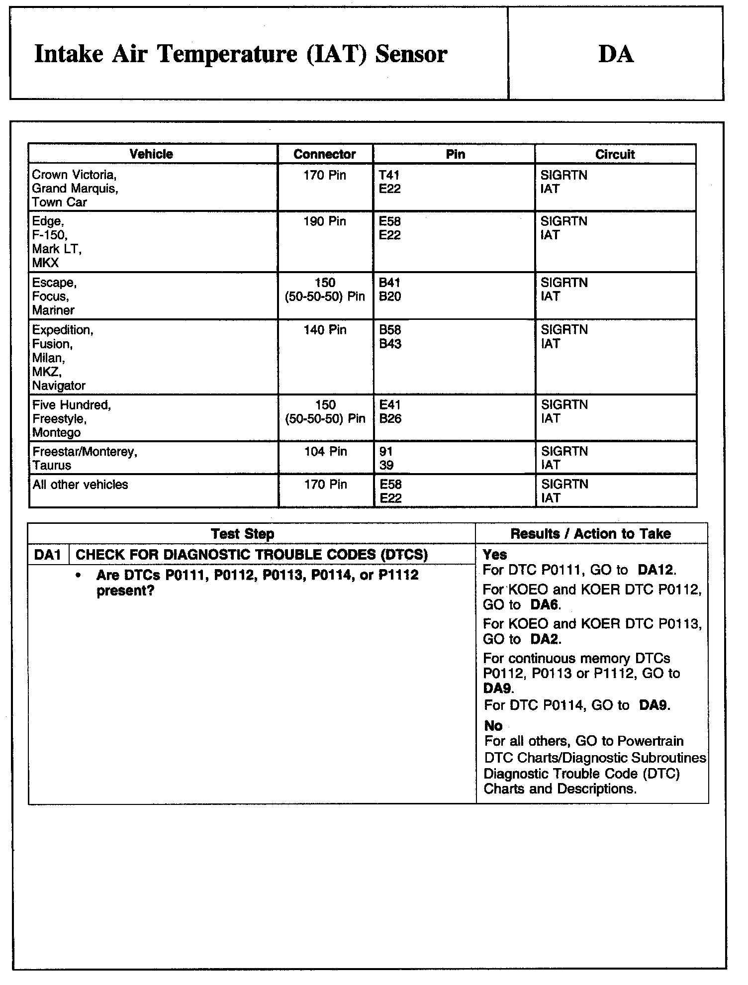 Tests DA: Intake Air Temperature (IAT) Sensor